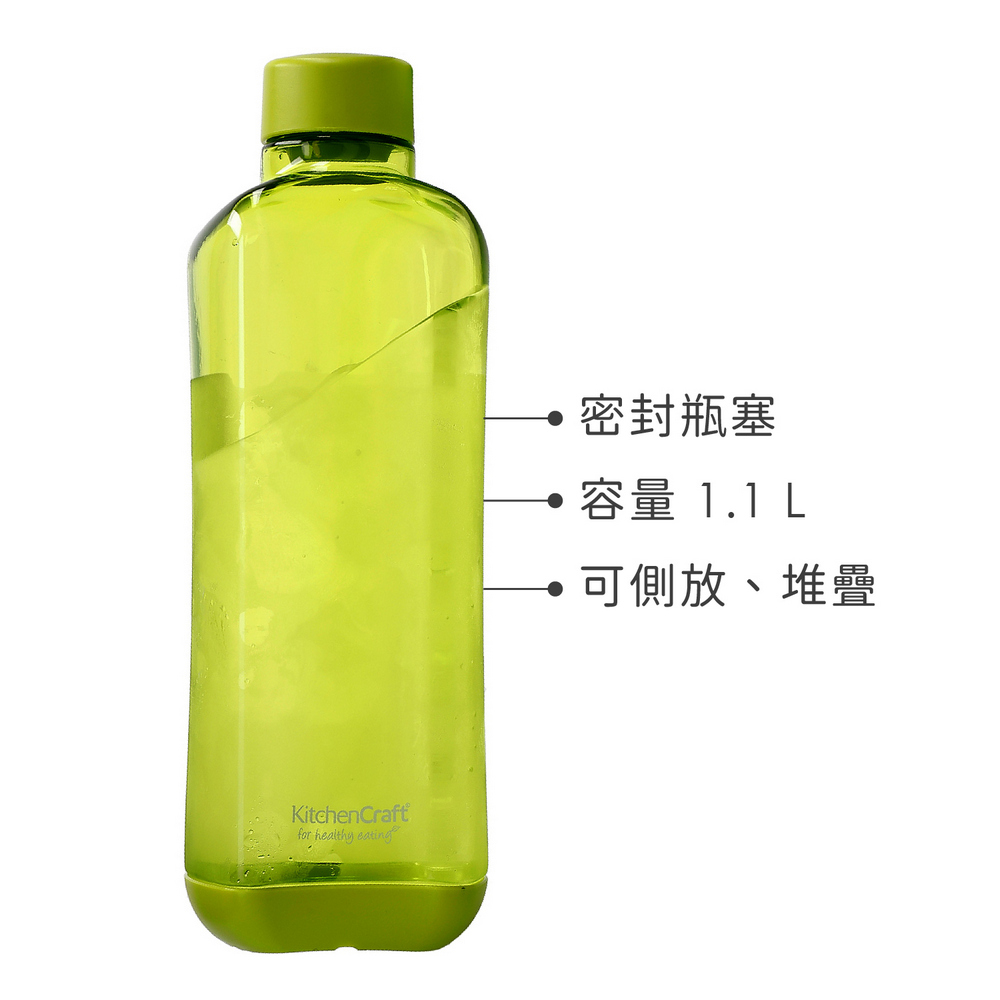 英國 KitchenCraft - 可堆疊運動水壺(透綠1.1L) / 水瓶