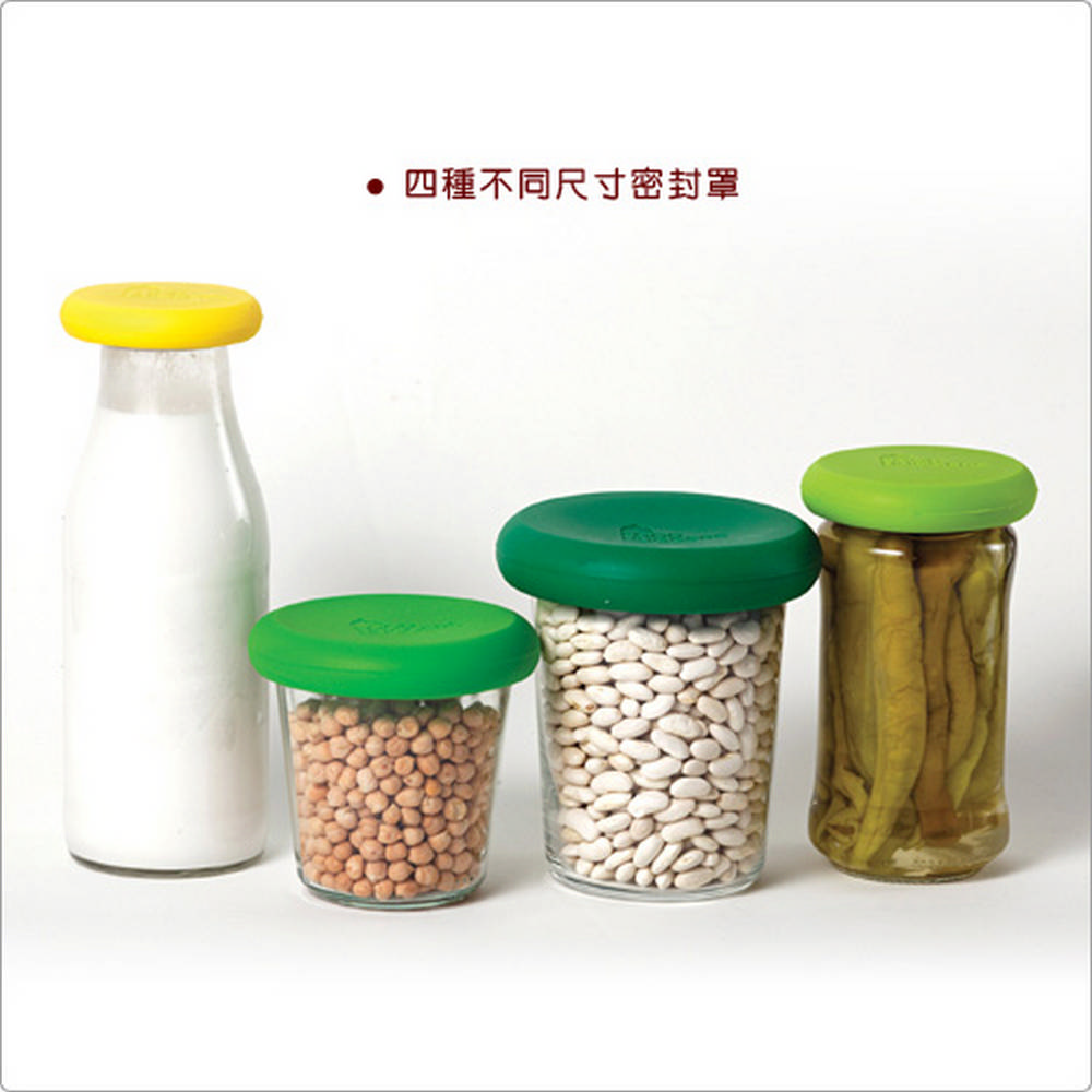英國 KitchenCraft - 矽膠保鮮膜4件(綠黃) / 收納 環保 外帶 防潮 發酵