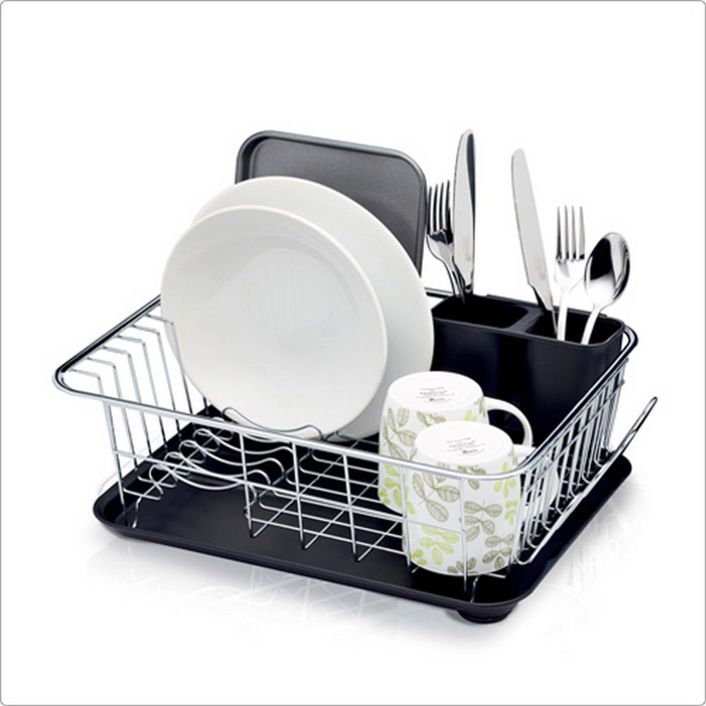 英國 KitchenCraft - 集水盤+餐具碗盤瀝水架(黑) / 餐具 碗盤收納架 流理臺架