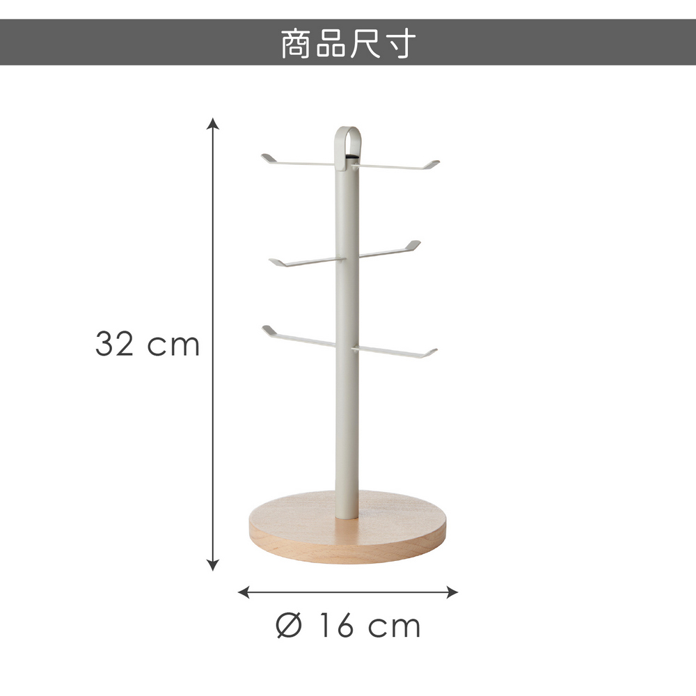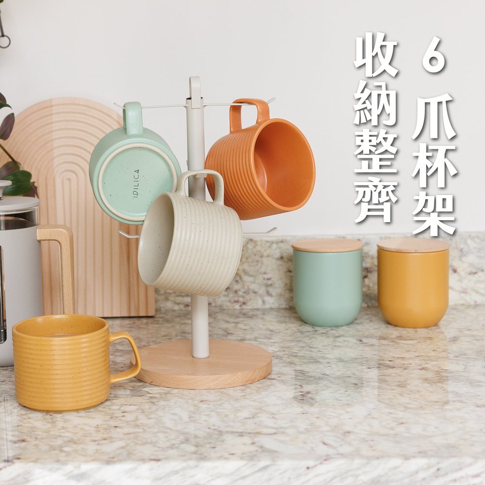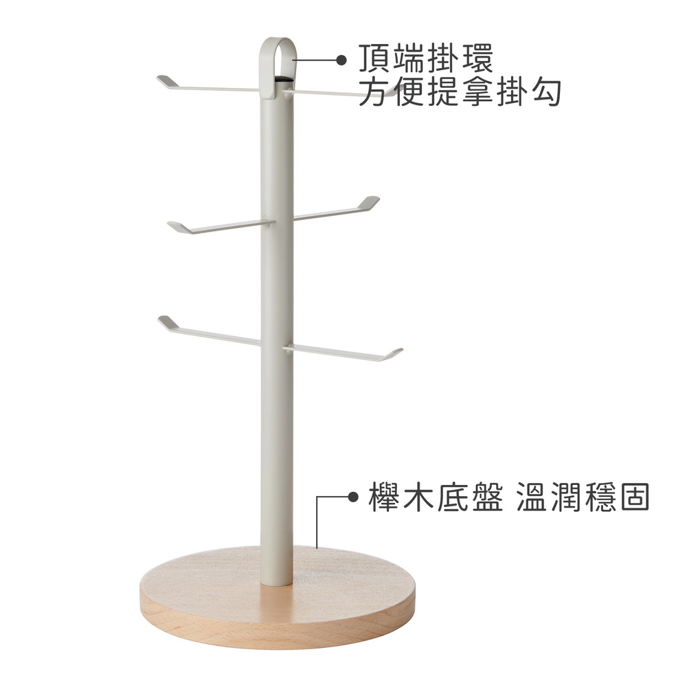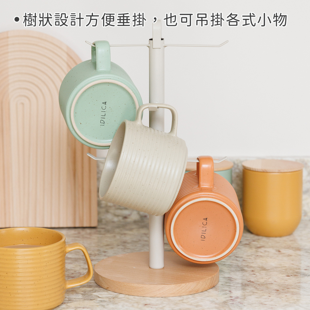 英國 KitchenCraft - Idilica圓座掛式杯架(米灰) / 馬克杯架 茶杯架 馬克杯收納