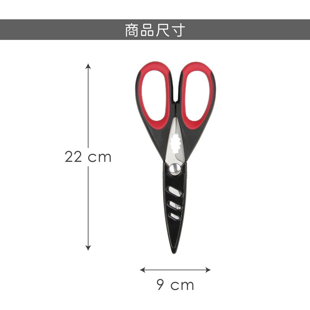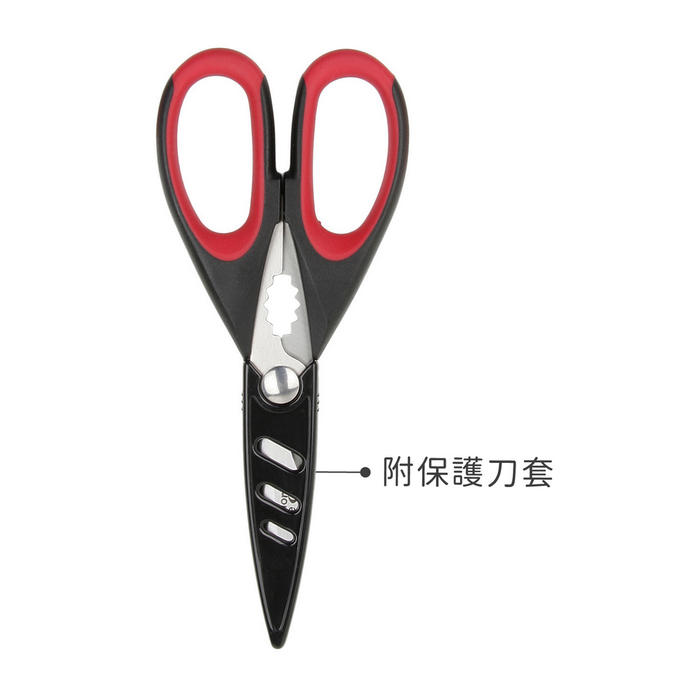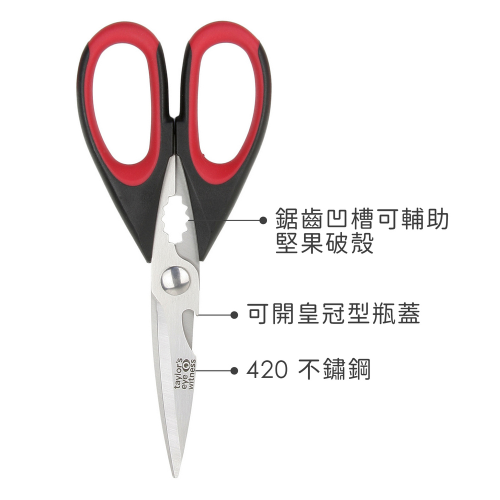 英國 Taylors Eye Witness - 附套廚用料理剪刀(黑紅22cm) / 多功能廚用剪刀 寶寶食物剪 副食品剪刀