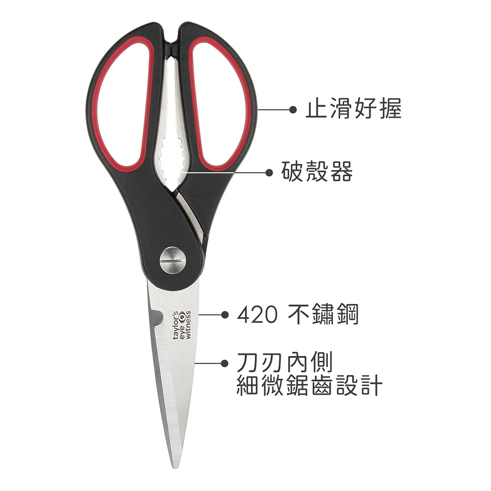 英國 Taylors Eye Witness - 廚用料理剪刀(紅23cm) / 多功能廚用剪刀 寶寶食物剪 副食品剪刀