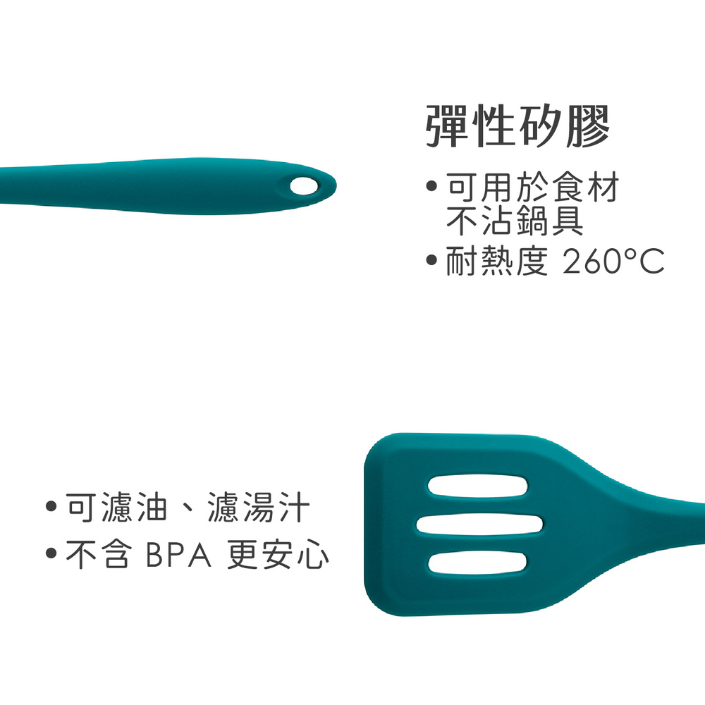 英國 Taylors Eye Witness - 不沾鍋矽膠濾油鍋鏟(綠松石29cm) / 炒菜鏟 矽膠鍋鏟