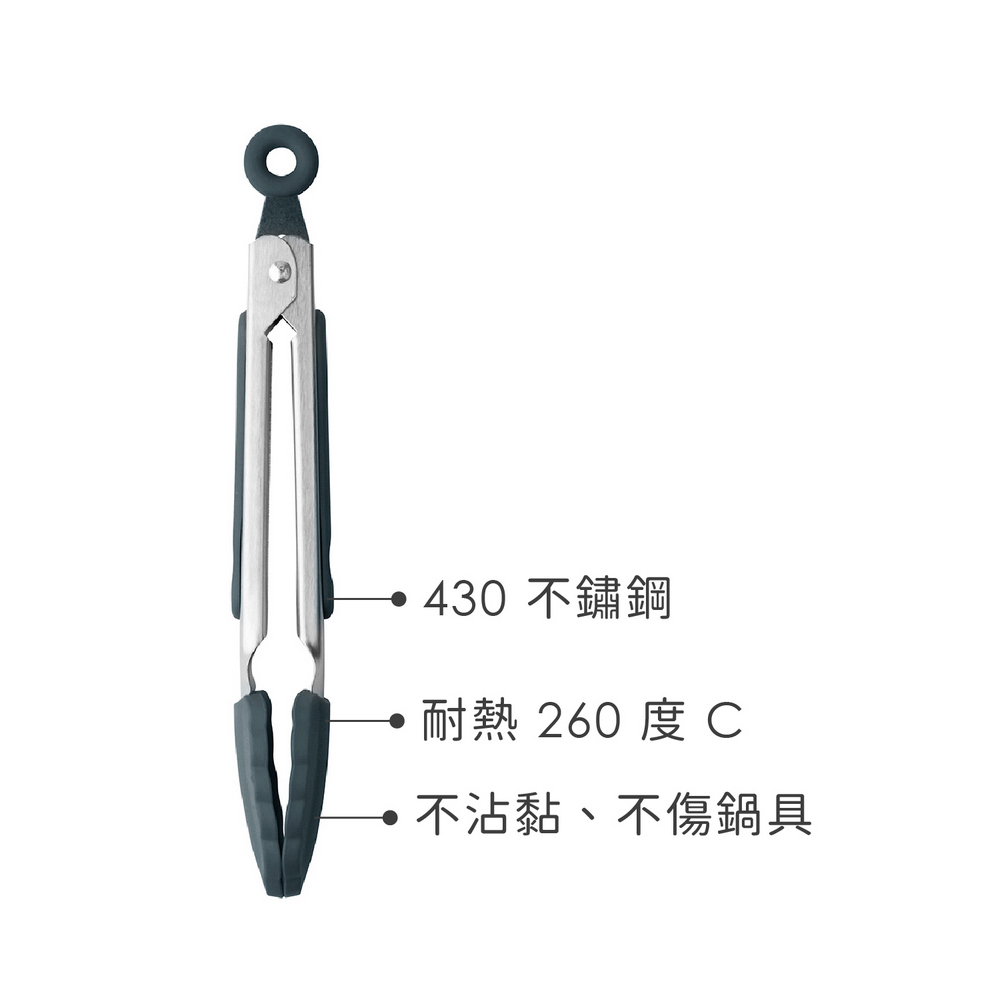 英國 Taylors Eye Witness - 不沾鍋矽膠餐夾(墨灰20.5cm) / 料理夾 分菜夾 食品夾