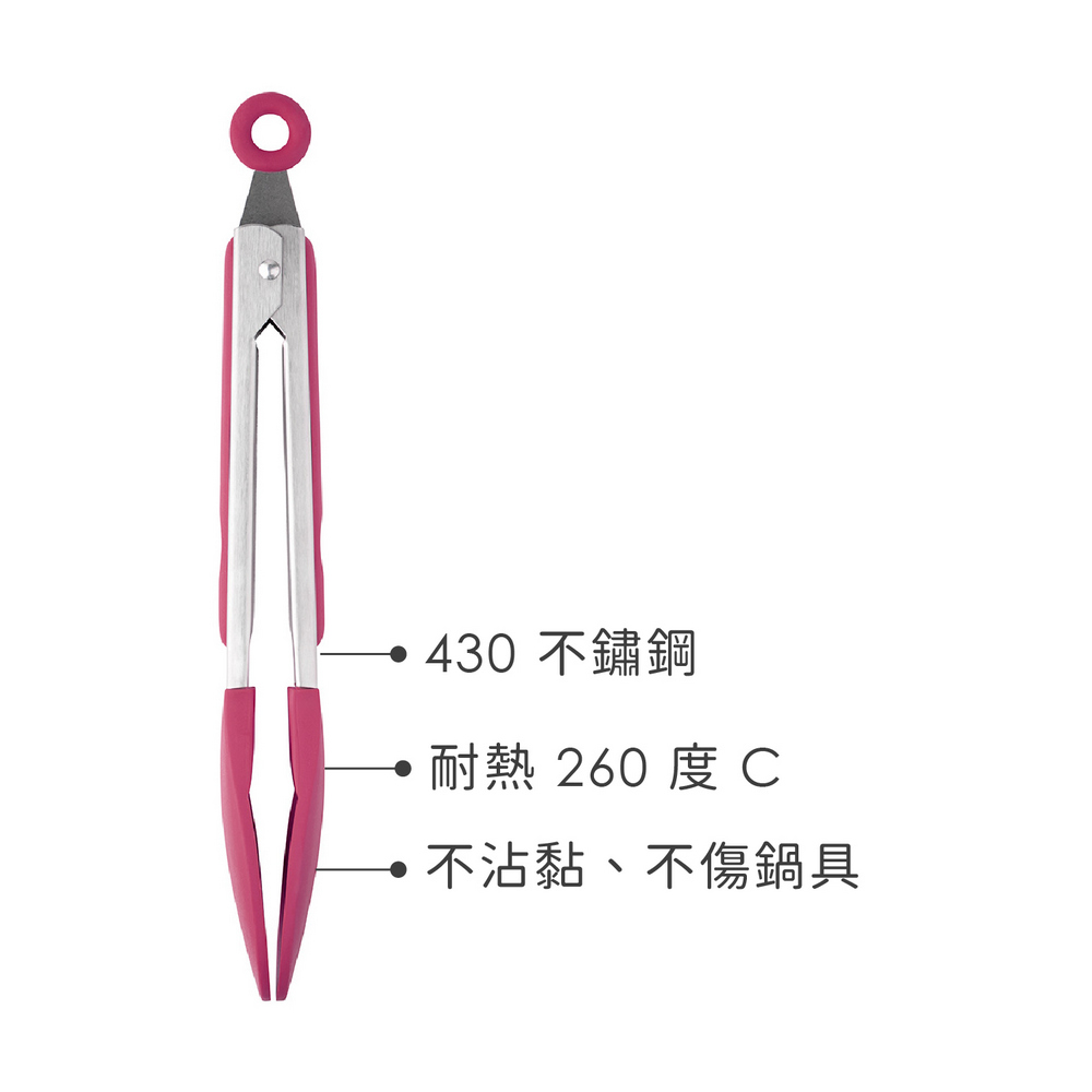 英國 Taylors Eye Witness - 不沾鍋矽膠餐夾(桃紅27cm) / 料理夾 分菜夾 食品夾