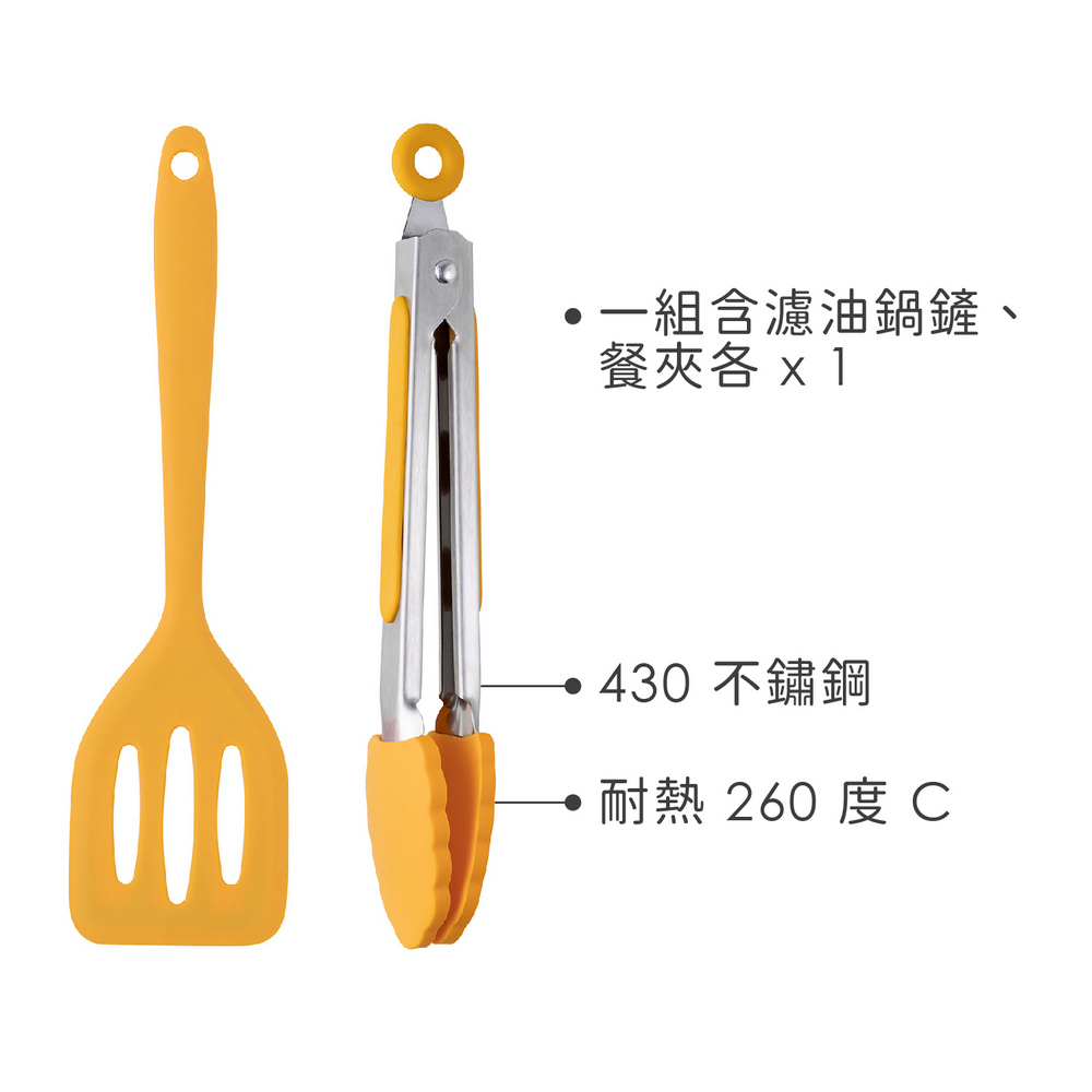 英國 Taylors Eye Witness - 迷你矽膠濾油鍋鏟+餐夾2件(菊黃)