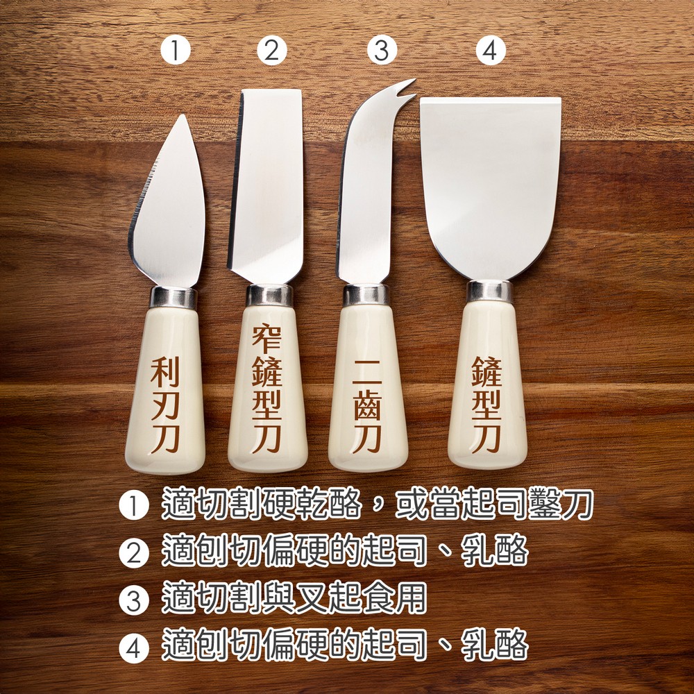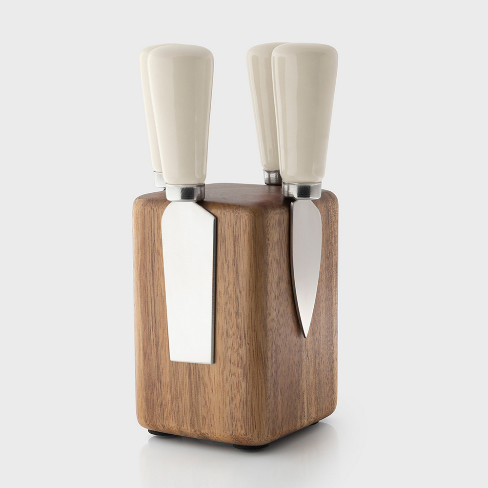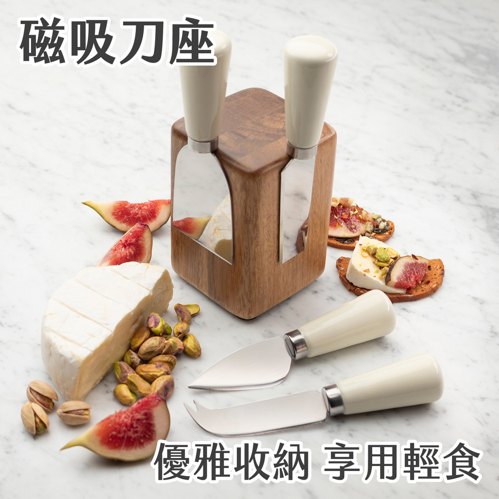 英國 Taylors Eye Witness - 磁吸刀座+起司刀叉4件(奶油白) / 起士叉 乳酪刀 起司刀叉組
