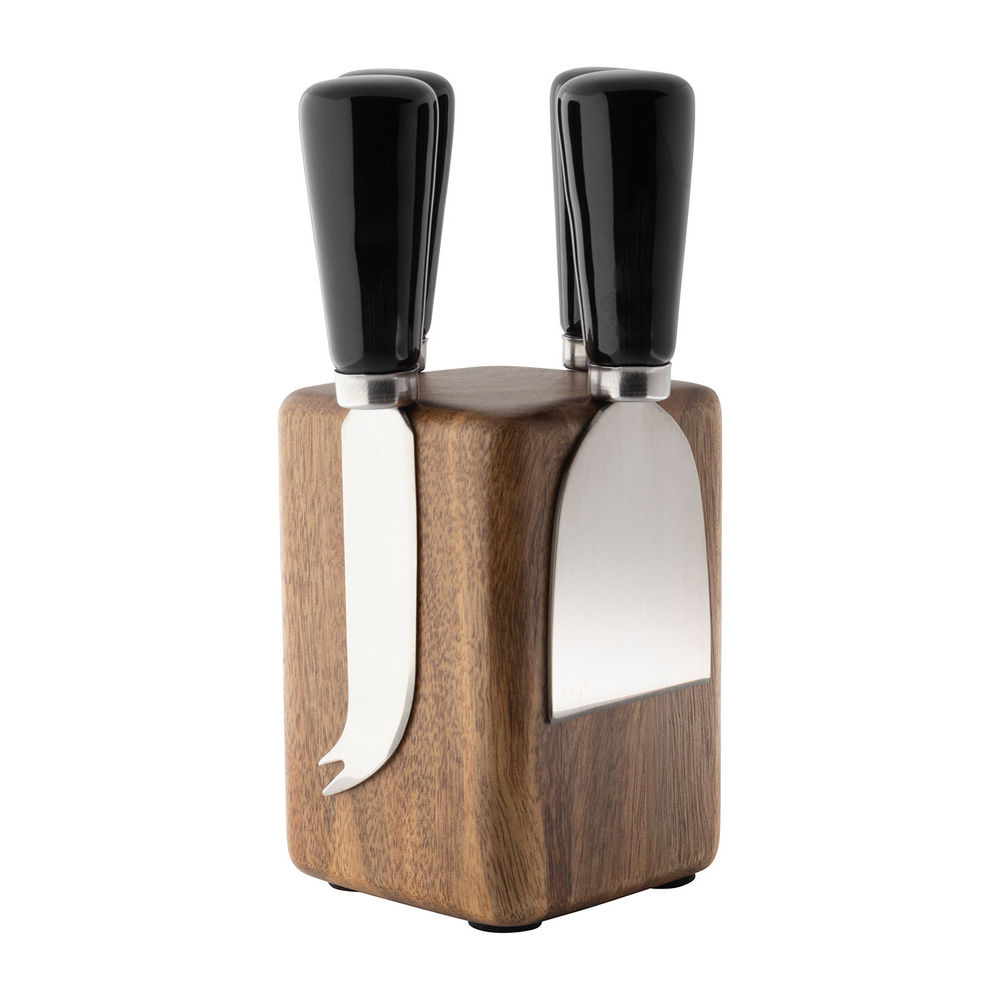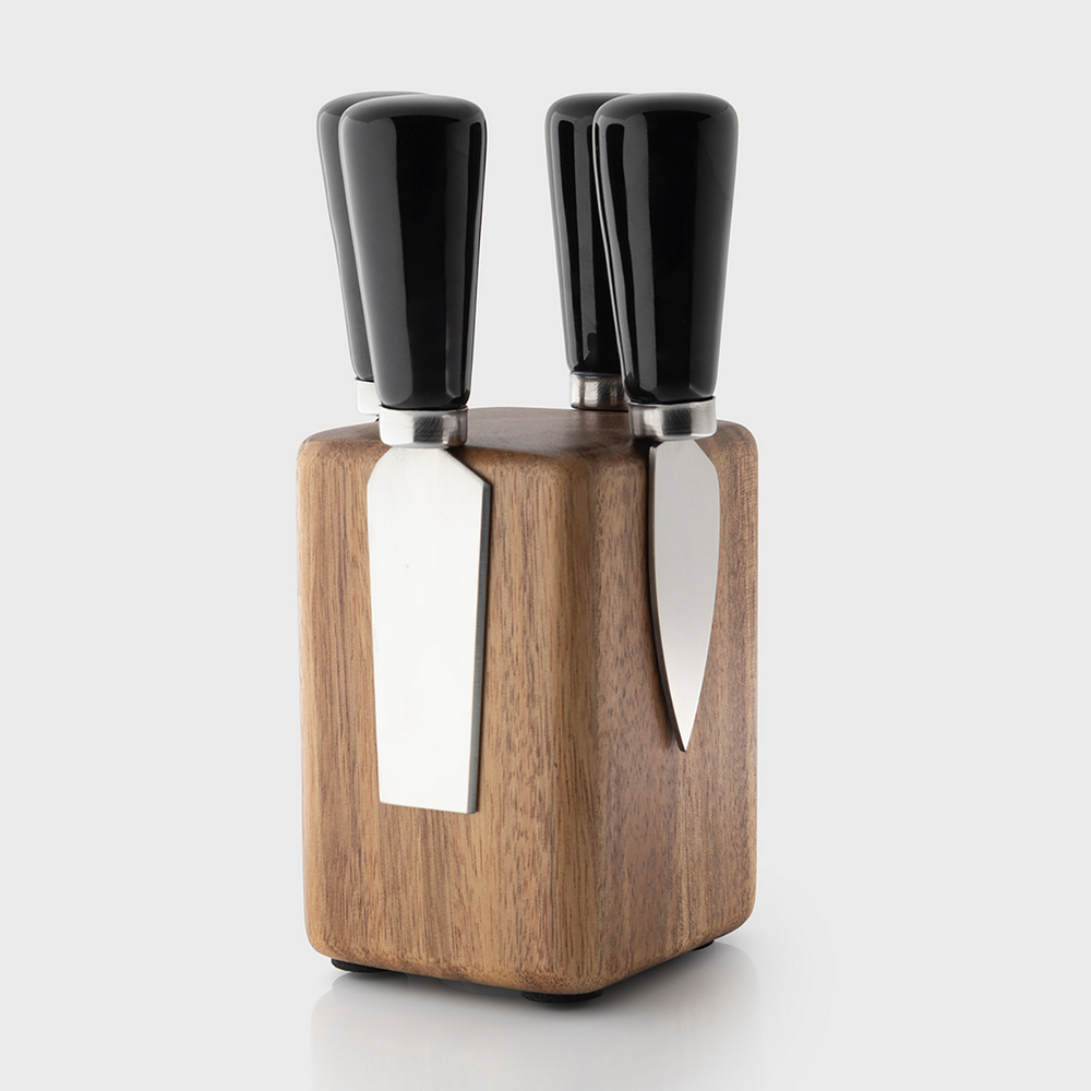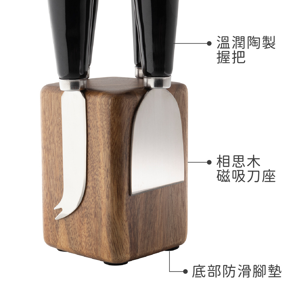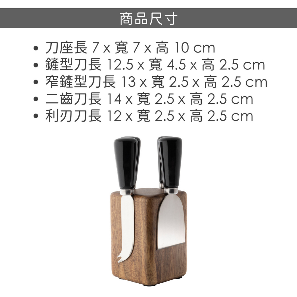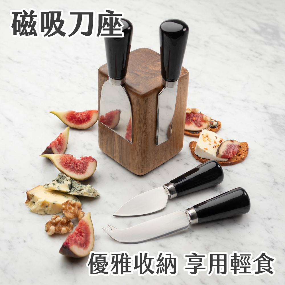 英國 Taylors Eye Witness - 磁吸刀座+起司刀叉4件(曜石黑) / 起士叉 乳酪刀 起司刀叉組