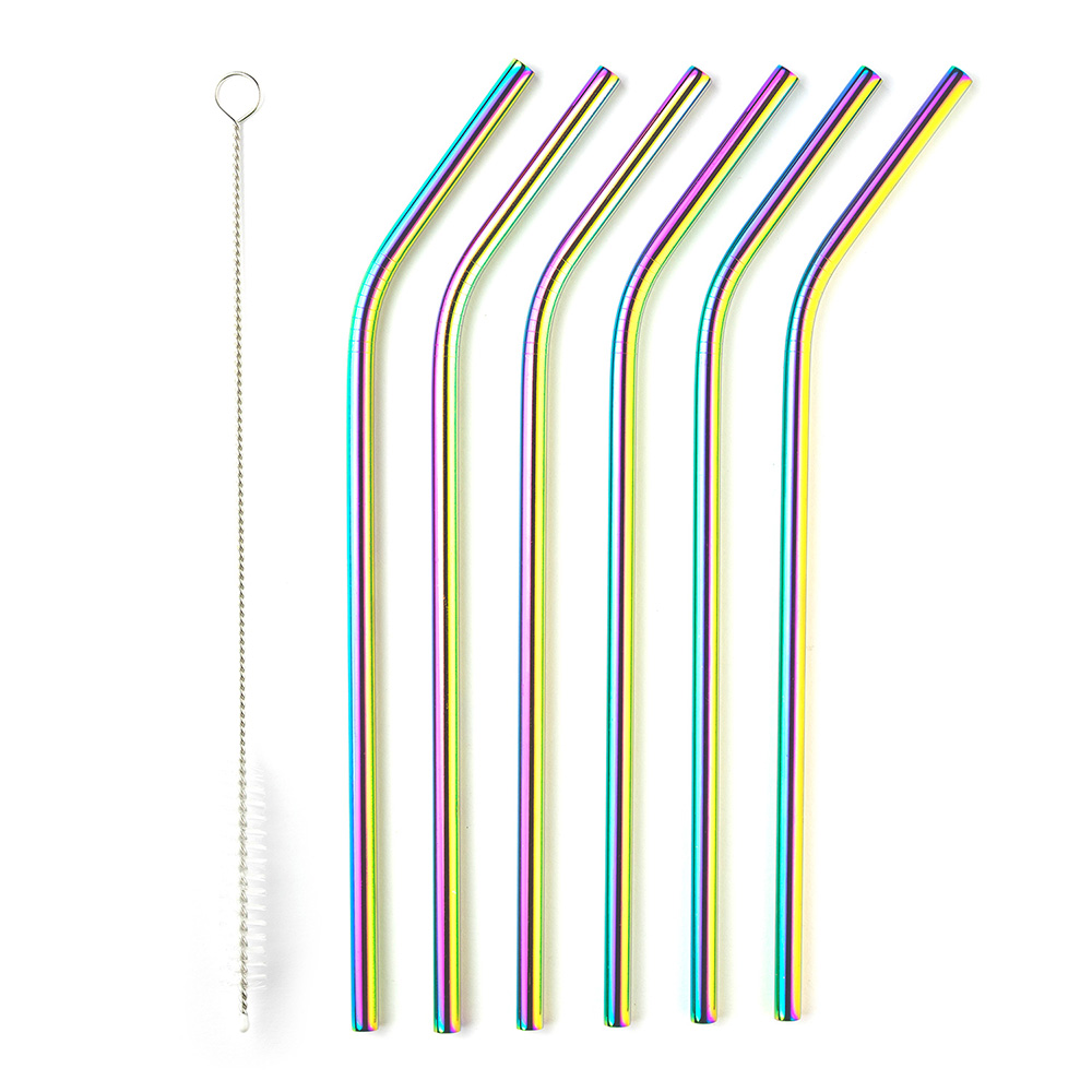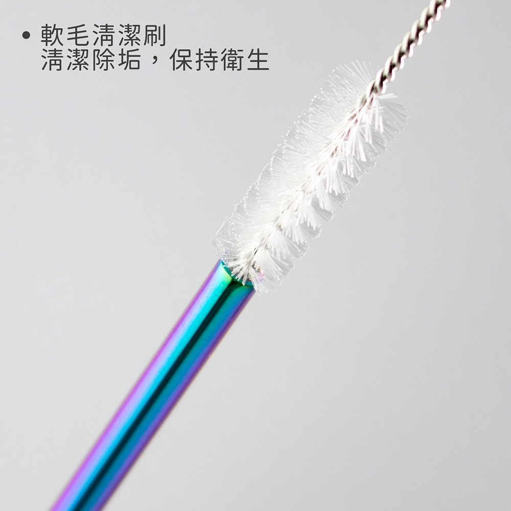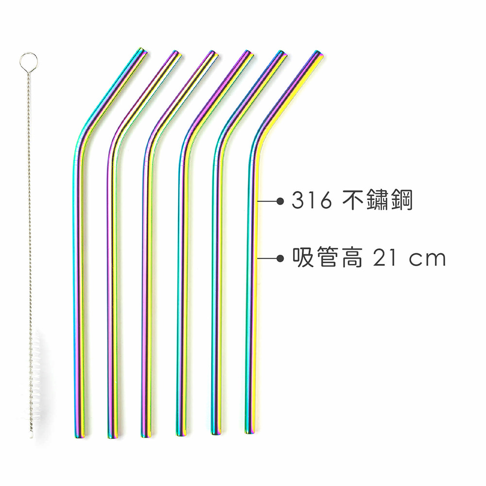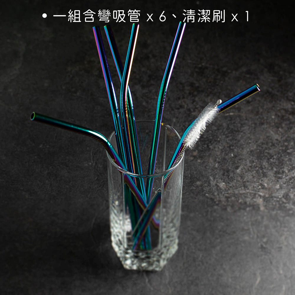 英國 Taylors Eye Witness - 清潔刷+不鏽鋼彎吸管6入(炫彩21cm) / 環保吸管 飲料杯 手搖杯 吸管刷