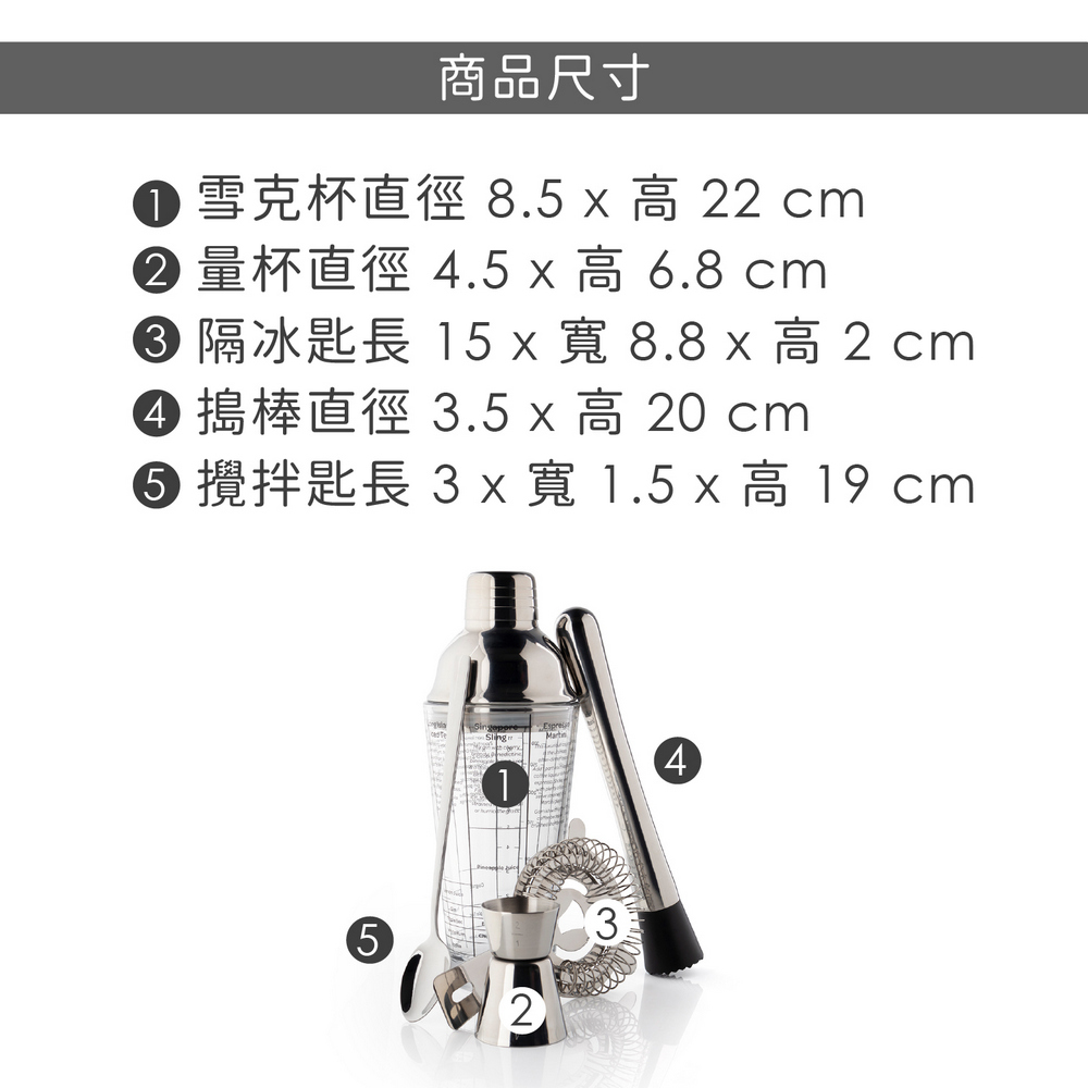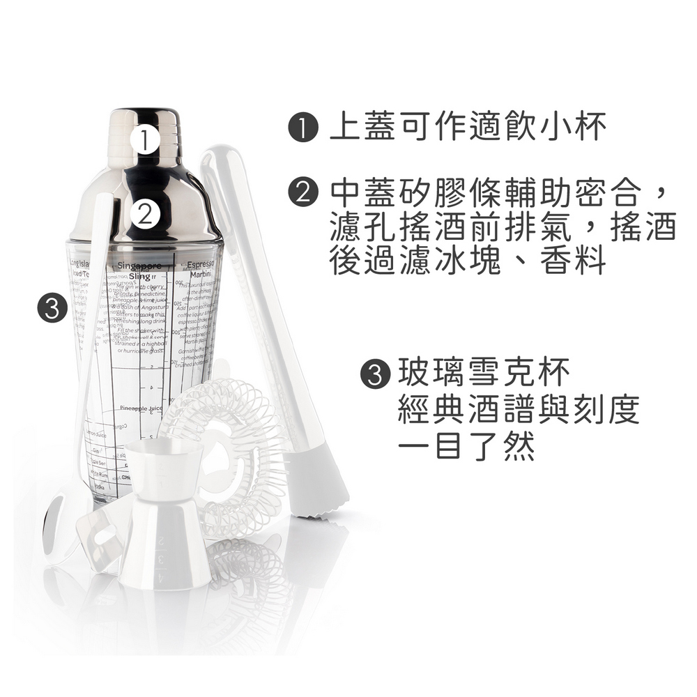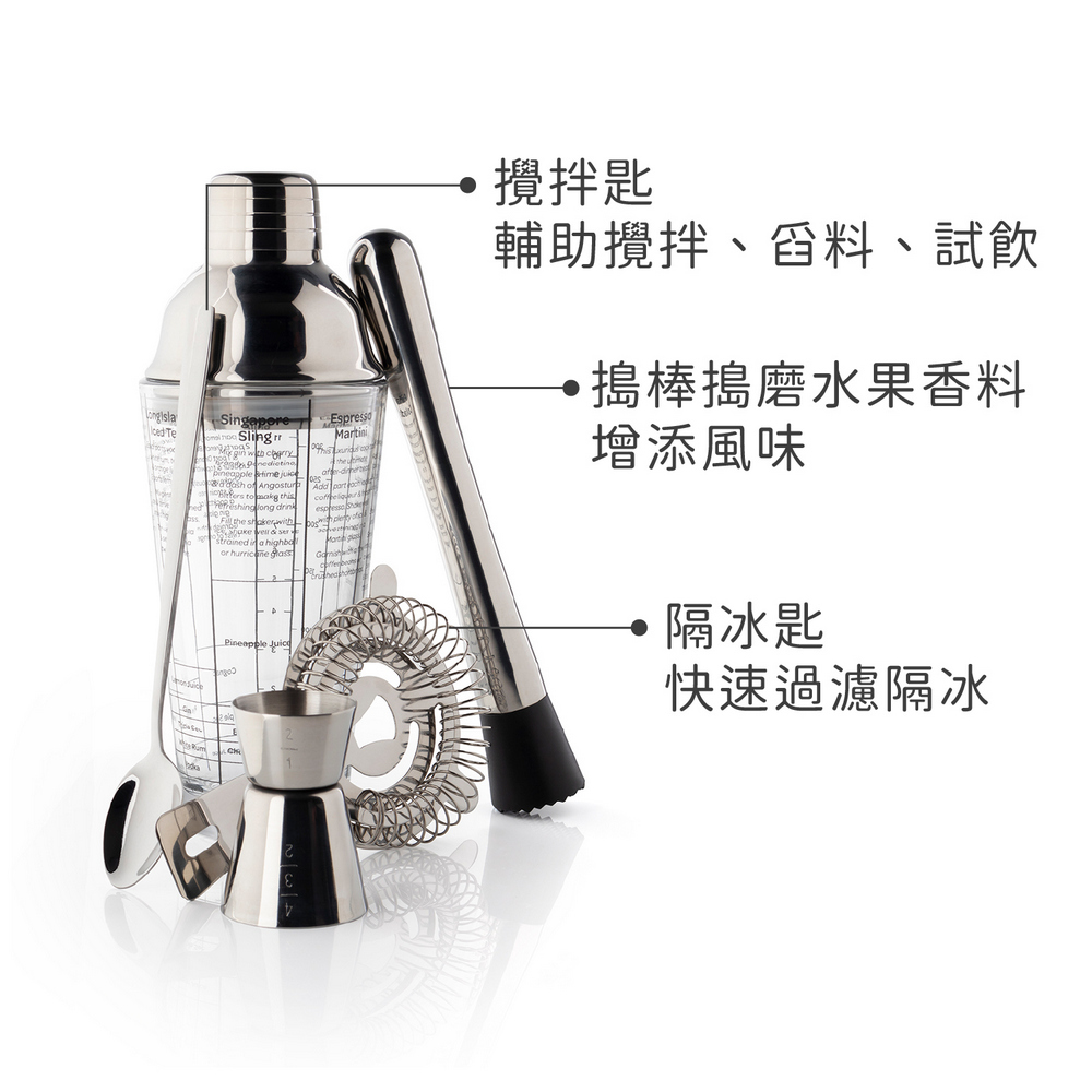 英國 Taylors Eye Witness - Taproom玻璃酒譜雪克杯+調酒工具組 / 雪克杯 搖酒器 隔冰匙 調酒量杯 調酒用具