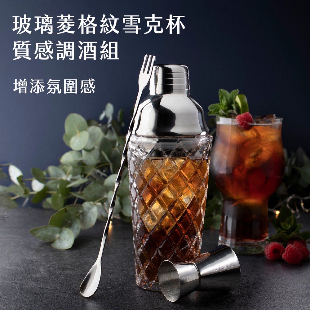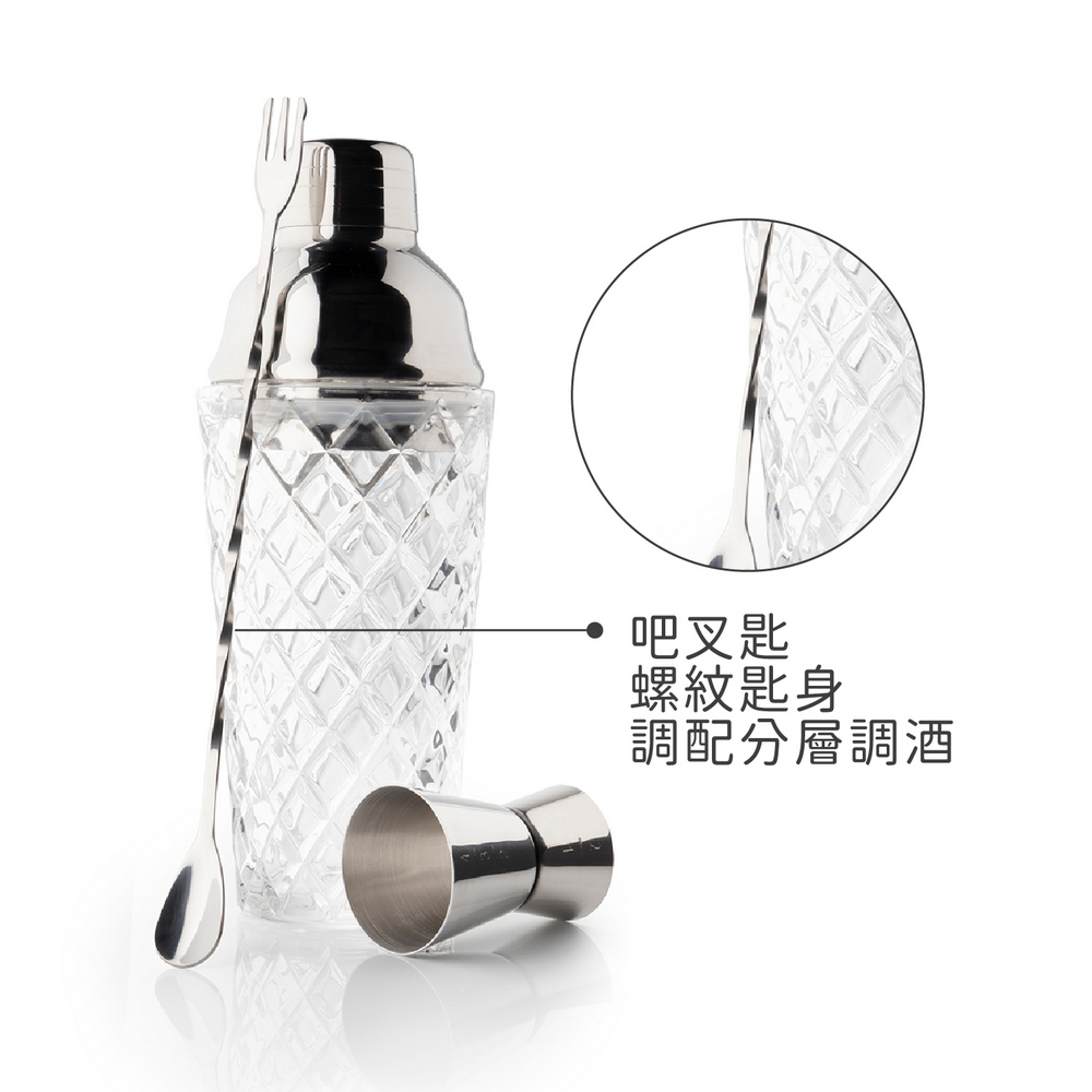 英國 Taylors Eye Witness - Taproom量杯吧叉匙+菱紋玻璃雪克杯(400ml) / 雪克杯 搖酒器 吧平匙 調酒量杯 調酒用具
