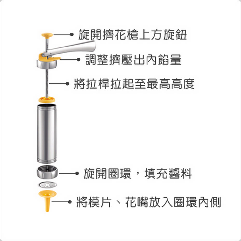 歐洲 tescoma - 4花嘴+餅乾擠花槍組 / 餅乾槍 擠花器 擠花槍