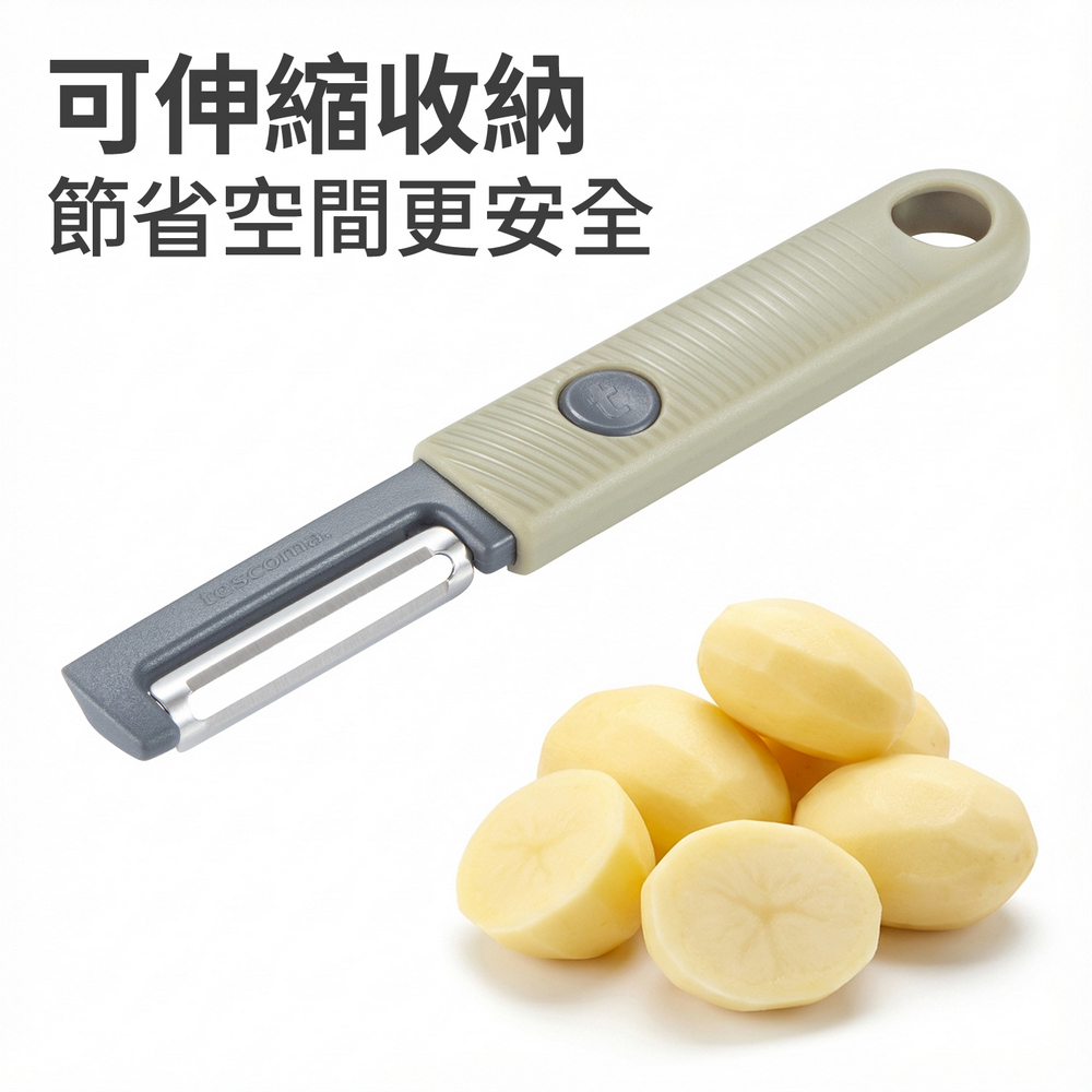 歐洲 tescoma - Move可收納不鏽鋼削皮刀(軍綠) / 水果蔬果刨皮刀 去皮刀 露營用