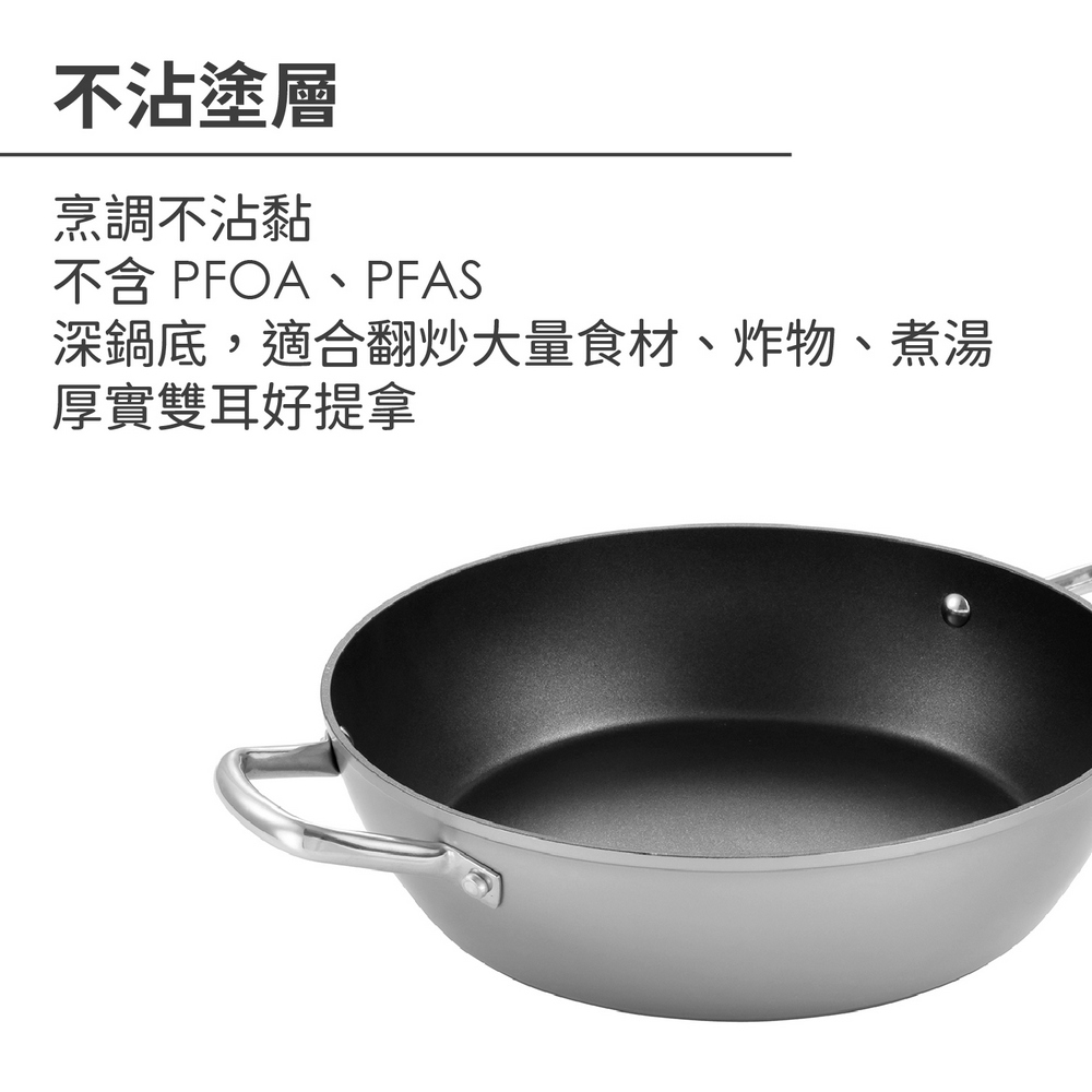 歐洲 tescoma - Grandchef雙耳不沾深炒鍋(鈦灰30cm) / 湯鍋 深煎鍋 雙柄鍋 煎炒鍋