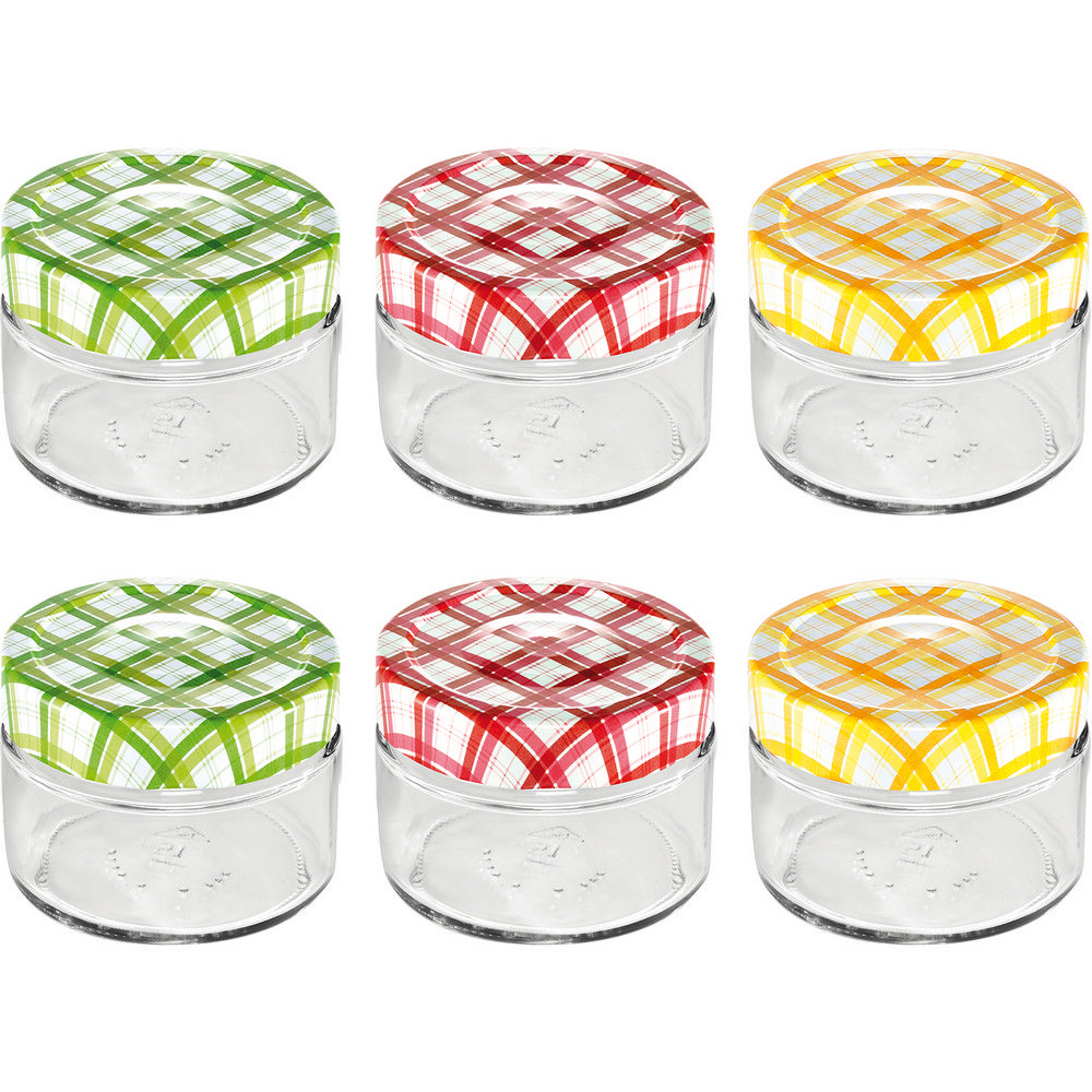 歐洲 tescoma - 格紋玻璃密封罐6入(125ml) / 保鮮罐 咖啡罐 收納罐 零食罐 儲物罐