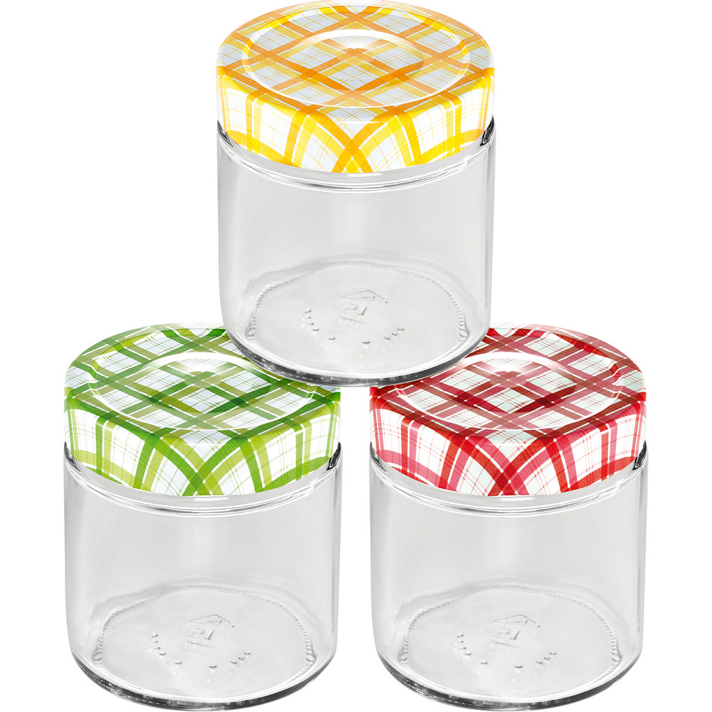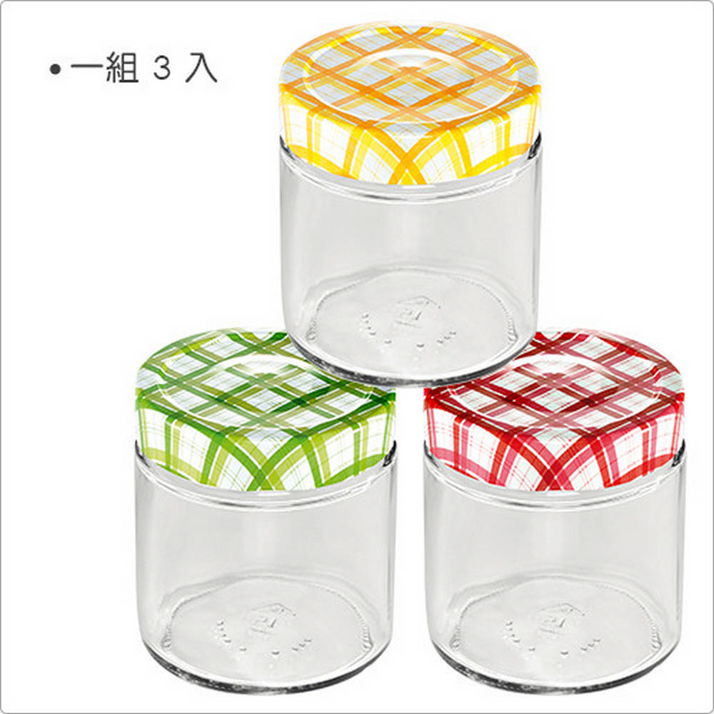 歐洲 tescoma - 格紋玻璃密封罐3入(400ml) / 保鮮罐 咖啡罐 收納罐 零食罐 儲物罐