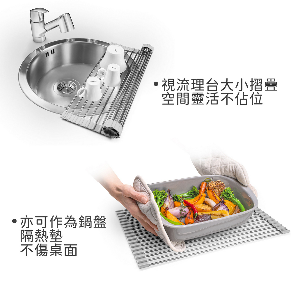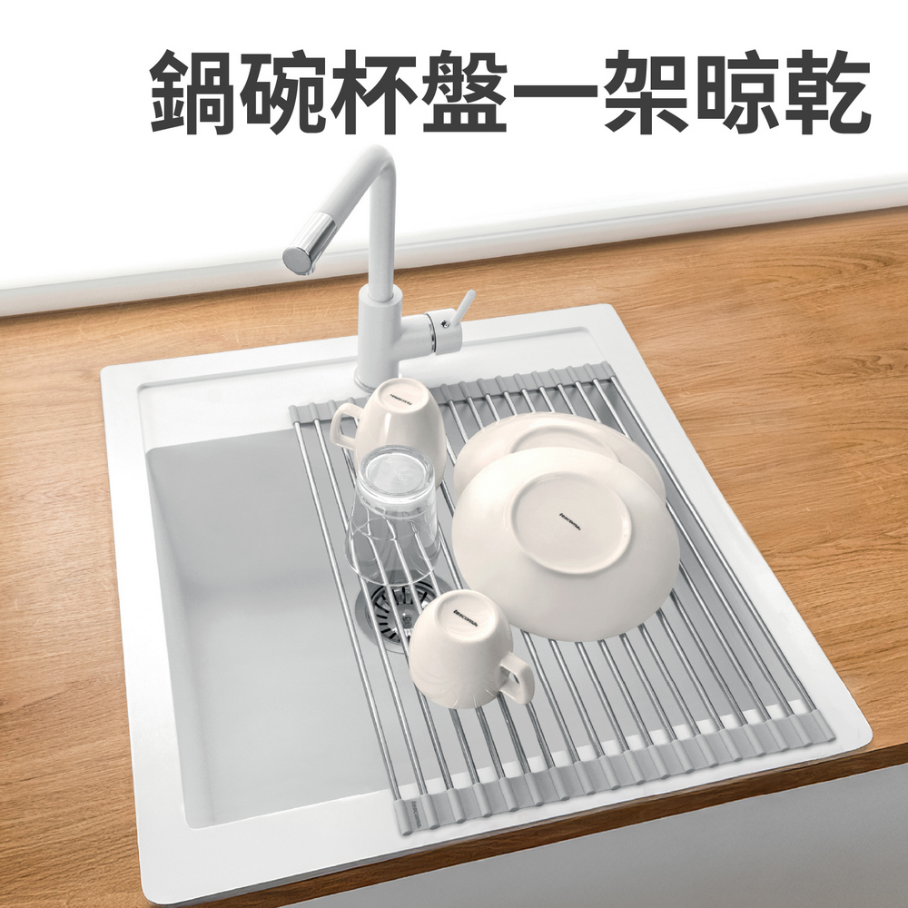 歐洲 tescoma - Puro碗盤瀝水架(岩灰46x34cm) / 餐具杯盤墊 隔水墊 流理臺墊