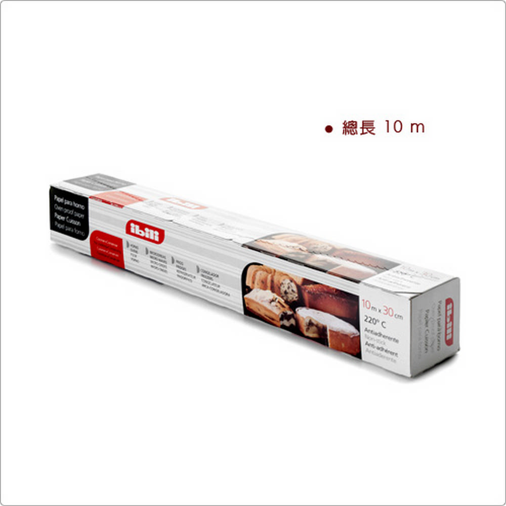 本商品一件入 (烘焙紙總長 10m,雙面皆可使用,可自行裁切;屬單次性耗損品)、耐熱度 220 度C (請遠離直接火源且避免直接接觸電器元件),適用烤箱、微波、冷藏冷凍。想要完美的為蛋糕脫模,除了技巧,更需要不沾黏的烘焙紙;推薦您使用此款不沾塗層烘焙紙,可減少油脂攝取更健康,防油耐熱且為一次性使用;可視需求自行裁切適當長度 (利用盒子邊緣裁切時請注意手部安全),每次烘烤前更換保持衛生。適合放入蛋糕模具內,或烘烤餅乾、蛋酥時鋪於烤盤上使用;不沾黏的特性,讓您烤後方便快速享用,輕鬆維持出爐時的完美形狀;也可於退溫後一同隨甜點放入冰箱冷藏。