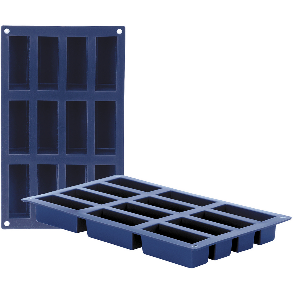 本商品一件入 (一盤 12 格、單格長 7.5 cm)、耐熱度 -40~230 度C (請遠離直接火源);適用烤箱、微波、冷藏冷凍、洗碗機並保持乾燥;初次使用時請抹點薄油,加強不沾黏的特性 (後續使用可不塗或少許塗抹);矽膠製品請勿使用刀叉等尖銳物品切割。矽膠通過歐洲 LFGB 認證,屬食品級品質保證。Blueberry 系列,以不沾黏矽膠材質為主角,設計出一套藍莓色的烘焙模具。悠閒的下午就來做點心吧,看著熱騰騰的蛋糕點心出爐,心情都好起來了。平盤式搭配獨立烤模,適合製作小巧精緻、充滿濃郁焦化奶油與杏仁香的費南雪 (金磚蛋糕),長條外型有如金磚,兩口吃的大小老少咸宜;亦可製作羊羹、巧克力,適合的大小方便您隨手食用;模具柔軟僅需稍微加壓施力便可輕鬆脫模,不易沾黏破壞點心型狀 (慕斯類請成型後再脫模),輕鬆享受美好的午茶時光。可吊掛收納不佔空間。