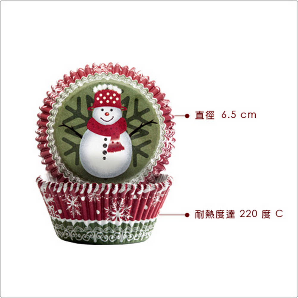 本商品一件入 (聖誕老人、雪人、薑餅人、馴鹿四款圖案各 x 25,共 100 入)、耐熱度 220 度C,適用冷藏冷凍、烤箱,麵糊填裝勿超過模具 3/4 容量、不可重複使用。悠閒的下午就來做點心吧,看著熱騰騰的蛋糕出爐,心情都好起來了。Sweet 系列,以粉嫩色系呈現繽紛可愛的氛圍,發展出翻糖點心、烘焙裝飾的工具。防油蛋糕紙模,適合烘烤鬆軟的杯子蛋糕或紮實的瑪芬蛋糕、鬆糕等,可加入蘋果、藍莓、椰子等不同乾果,口感豐富更美味;亦可作為各式派對點心或是節慶小禮物,一次滿足視覺與味覺,輕鬆享受美好的午茶時光。
