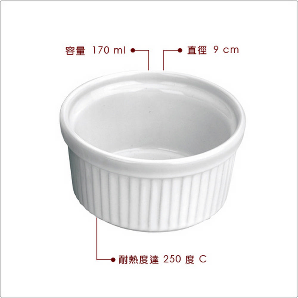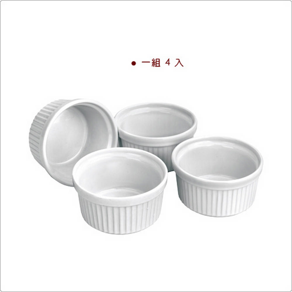 本商品一組 4 入、單杯容量約 170 ml,耐熱度 250 度C;適用烤箱、微波 (適低溫中溫加熱,並請避免溫度劇烈變化)、洗碗機並保持乾燥。喜愛焦糖布丁或蛋奶酥的您,推薦利用此款烤杯在家自製美味甜點。簡約潔白的陶杯搭配外側線條刻紋,凸顯雅緻生活氣氛;布丁出爐後還可搭配噴槍,焦烤灑滿布丁上的糖粒,歡樂享食焦糖布丁。除此之外也非常適合焗烤通心粉、舒芙蕾、瑪芬蛋糕或可當點心碗、醬碟等擺盤使用。