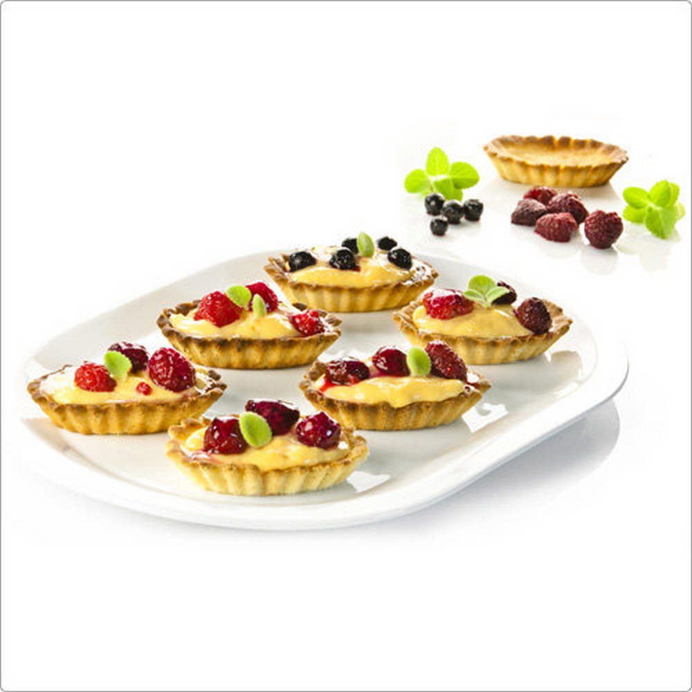 本商品一件入。享受點心製作的成就,與家人或朋友們分享自製的美味糕點,度過愜意的午茶時光吧。圓型塔模搭配波浪邊褶,稍淺的設計適合製作蘋果派、草莓塔或法式鹹派等各式甜鹹點心;當然也適用布丁、奶酪、果凍或起司蛋糕;較小的尺寸可製作 1 人份的甜點,輕巧無負擔。不沾黏特性好脫模讓您烤後方便快速享用,輕鬆享受美好的午茶時光。