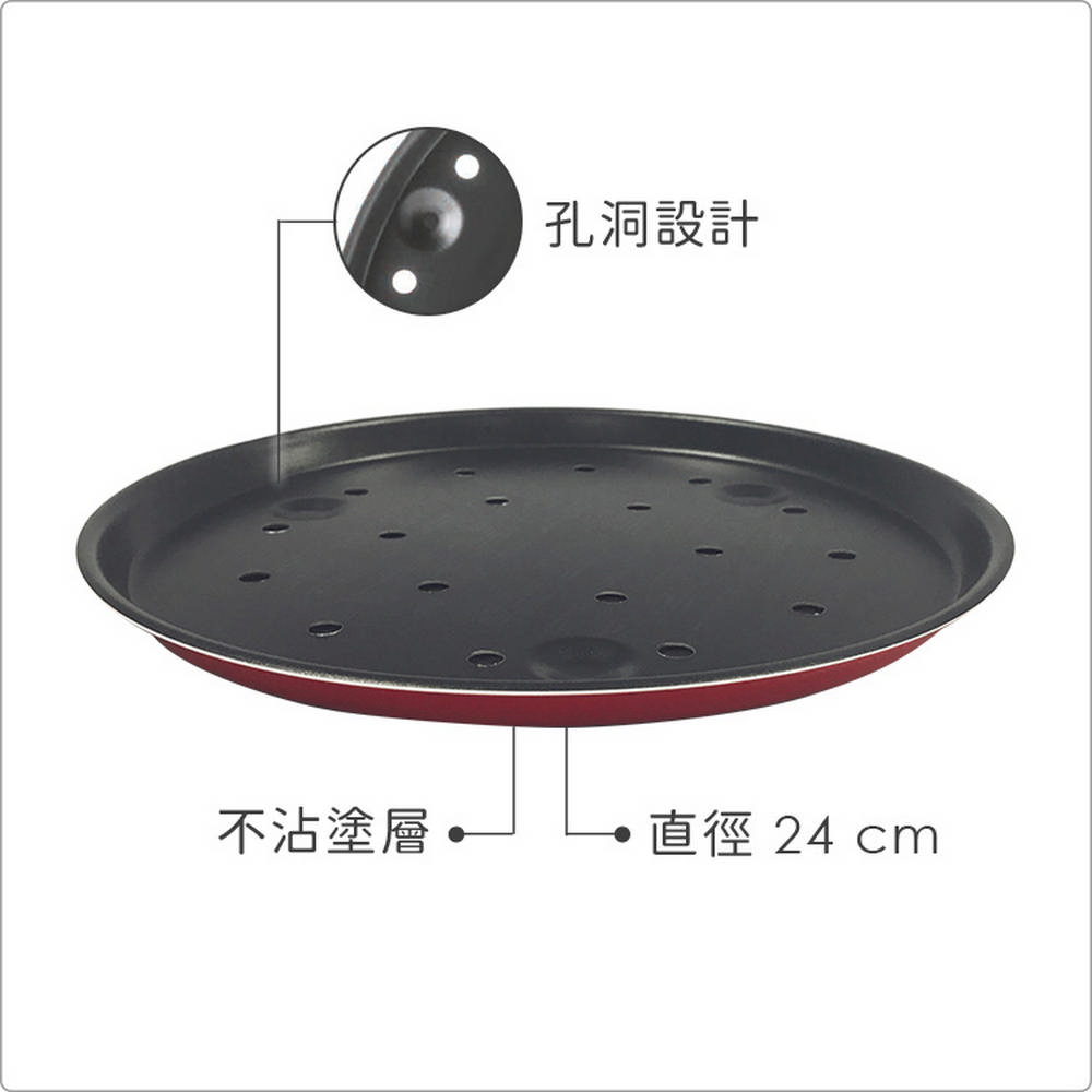 ※ 孔洞設計,烘烤時輔助散出披薩底部熱氣、水份,保持餅皮酥脆。