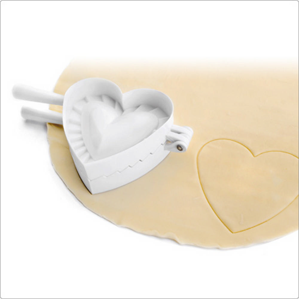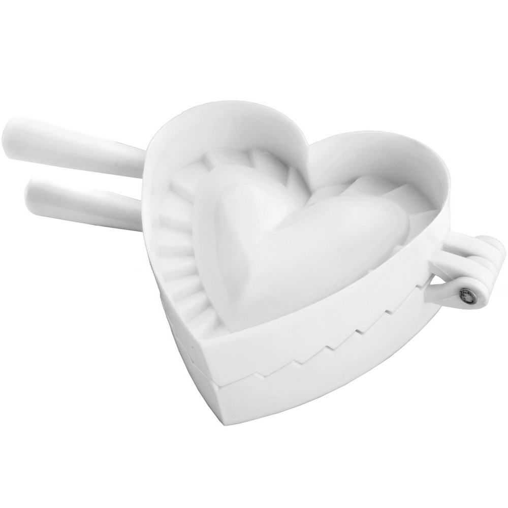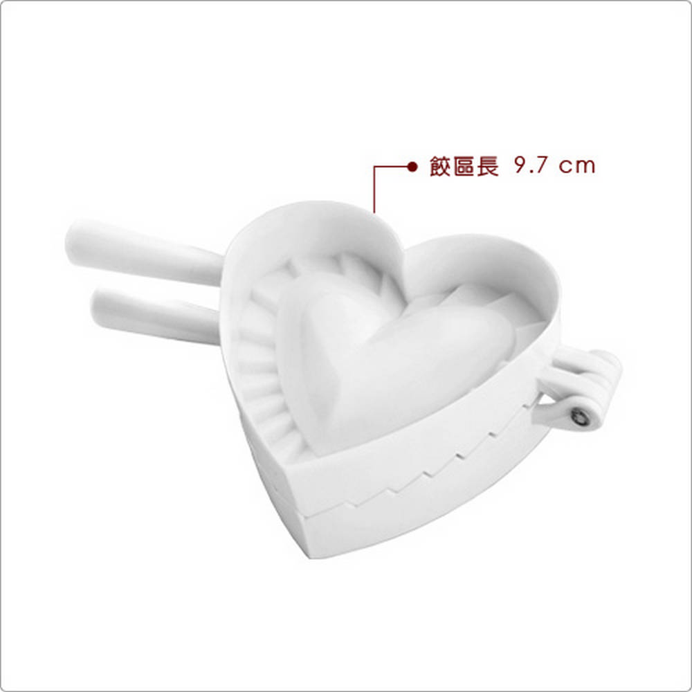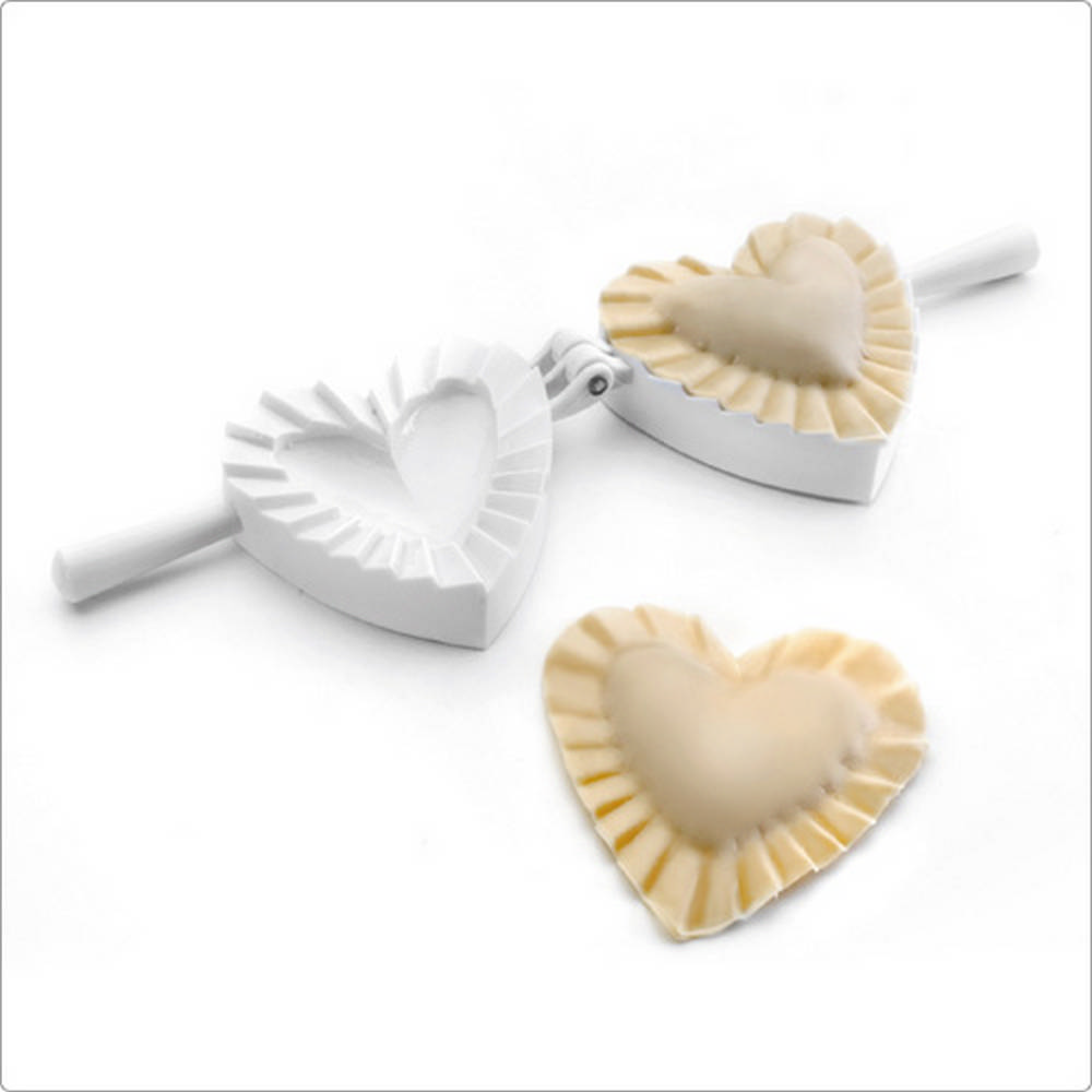 本商品一件入、適用洗碗機並保持乾燥;適合義大利餃、餛飩、手工餡料餃、蛋餃。喜愛動手作水餃自製營養美味,推薦您使用此款壓模器製作風味水餃;首先將壓模器平滑側下壓麵皮,切割出愛心形狀的麵皮,接著打開壓模器 (摺痕朝上) 於模具內灑入少許麵粉以減少沾黏,平鋪麵皮覆蓋摺邊紋路,再填入絞肉、高麗菜等餡料,最後手持兩側握柄向內闔上,摺邊紋路因加壓施力而使麵皮緊密結合、完整包覆餡料,此時開啟模具便可輕鬆脫模;滾水煮 8~10 分鐘 (麵皮厚度可能影響烹煮的時間長短) 或下油鍋酥炸,等待美味的餃子上桌囉。使用簡易的方法製作富專業與美感的包餡麵點,既省時又有趣。