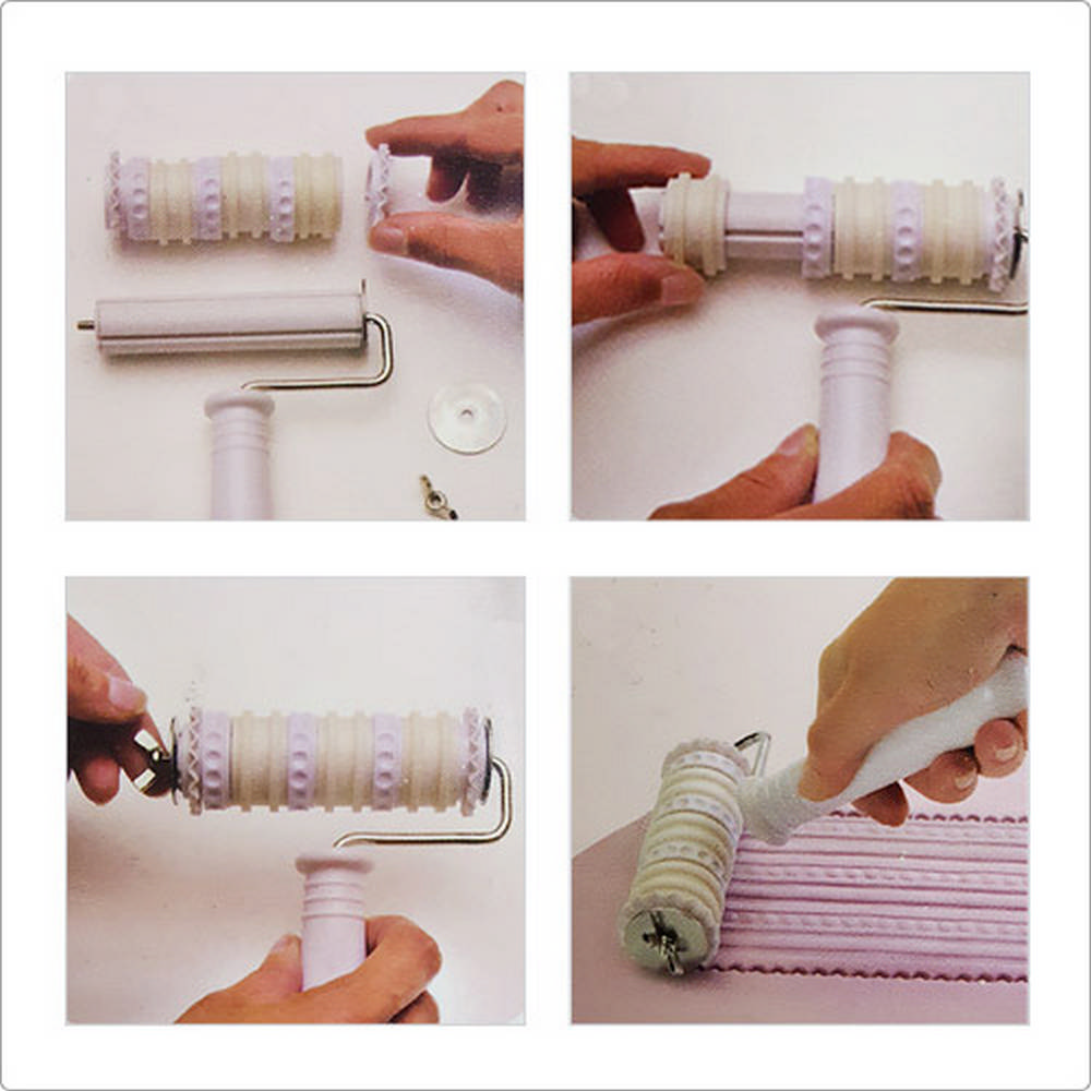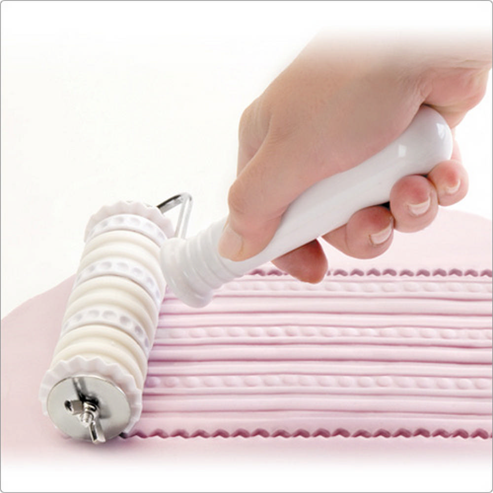 滾輪切刀 x 9 (波浪、鋸齒、直刀各 x 3);壓紋模共 2 種(雙直紋、立體珠紋);適用洗碗機並保持乾燥;適用翻糖片、麵糰。想親手製作美麗精緻的翻糖蛋糕可不簡單,利用簡單的翻糖裝飾模具,您也可以壓出細膩精緻的花邊,輕鬆變身裝飾達人。欲更換輪片時,請先將鎖頭、螺帽與金屬墊片取下,依次放入所需輪片後,再依序旋回金屬墊片、螺帽與鎖頭。依組裝的造型輪片以及不同間距,可壓出各式寬窄、線條圍邊,也可將翻糖替換成餅皮、軟糖;操作簡單適合與家中小朋友一起動手做點心,享受歡樂親子時光。另可當黏土壓模使用,增添小朋友創作樂趣。