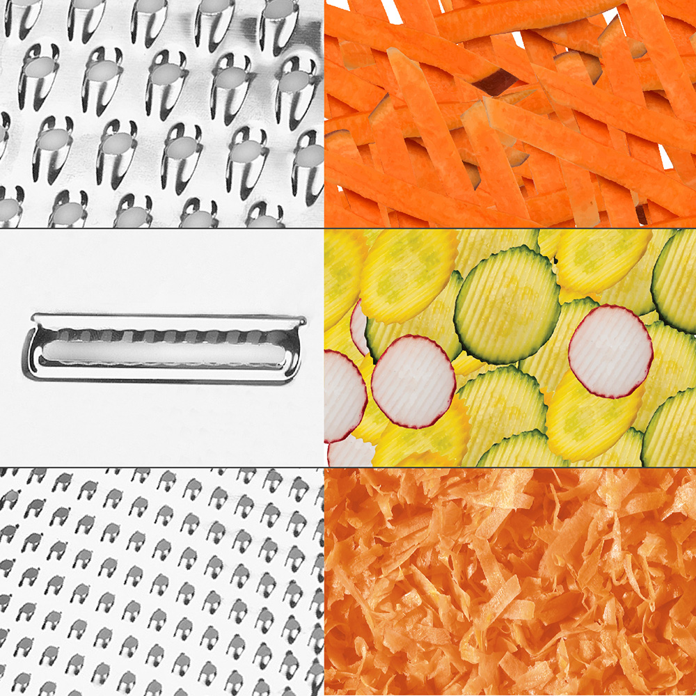 ※ 適合刨切偏硬的起司、大蒜、高麗菜、馬鈴薯和紅蘿蔔等食材,或刨巧克力、柑橘皮等佐料烘焙時使用。