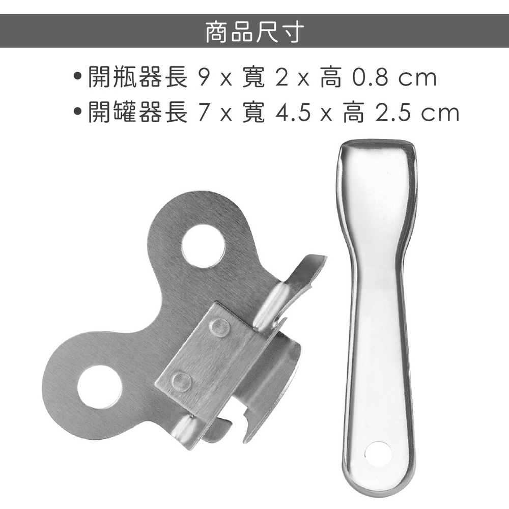 尺寸:開罐器長 7 x 寬 4.5 x 高 2.5 cm;開瓶器長 9 x 寬 2 x 高 0.8 cm