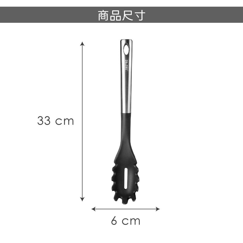 尺寸:平放時長 33 x 寬 6 x 高 4.8 cm;杓面長 9.5 x 寬 6 cm、濾孔長 4.8 x 寬 0.8 cm