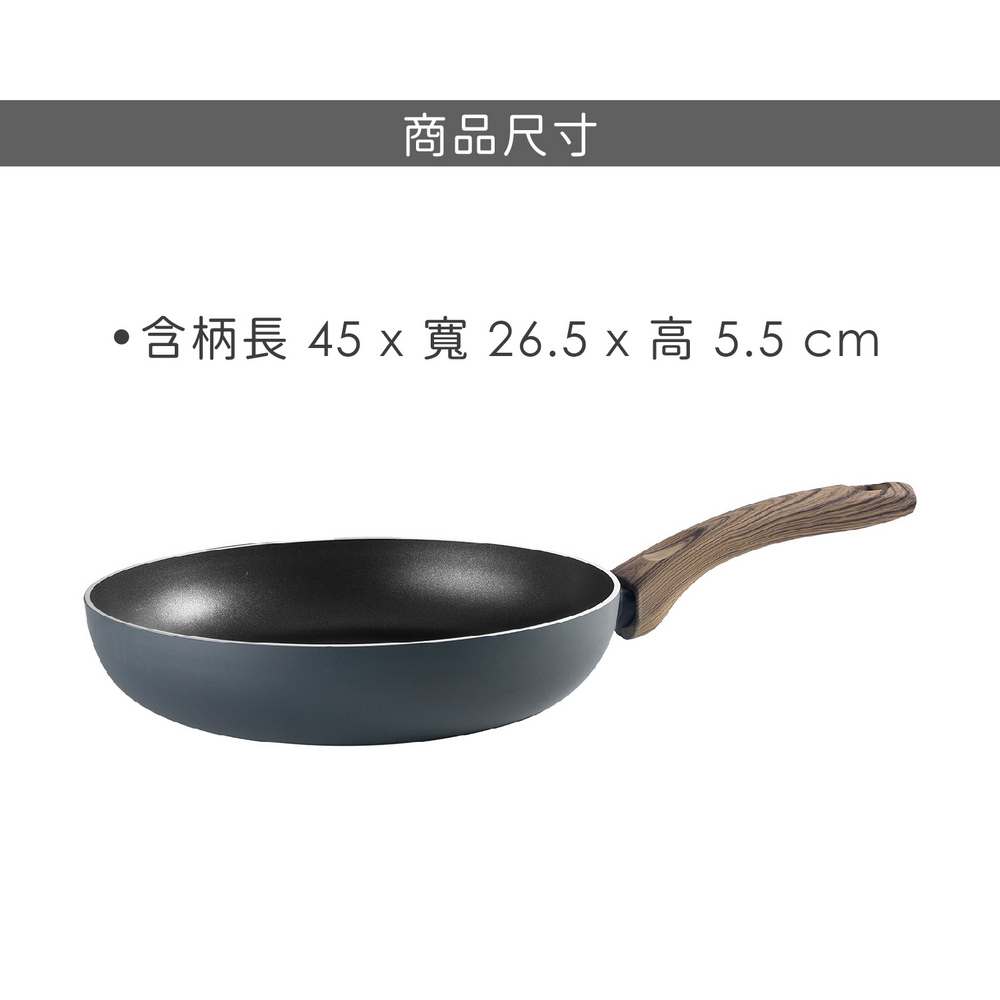 尺寸:含柄長 45 x 寬 26.5 x 高 5.5 cm;內徑 26 cm;底徑 20.5 cm