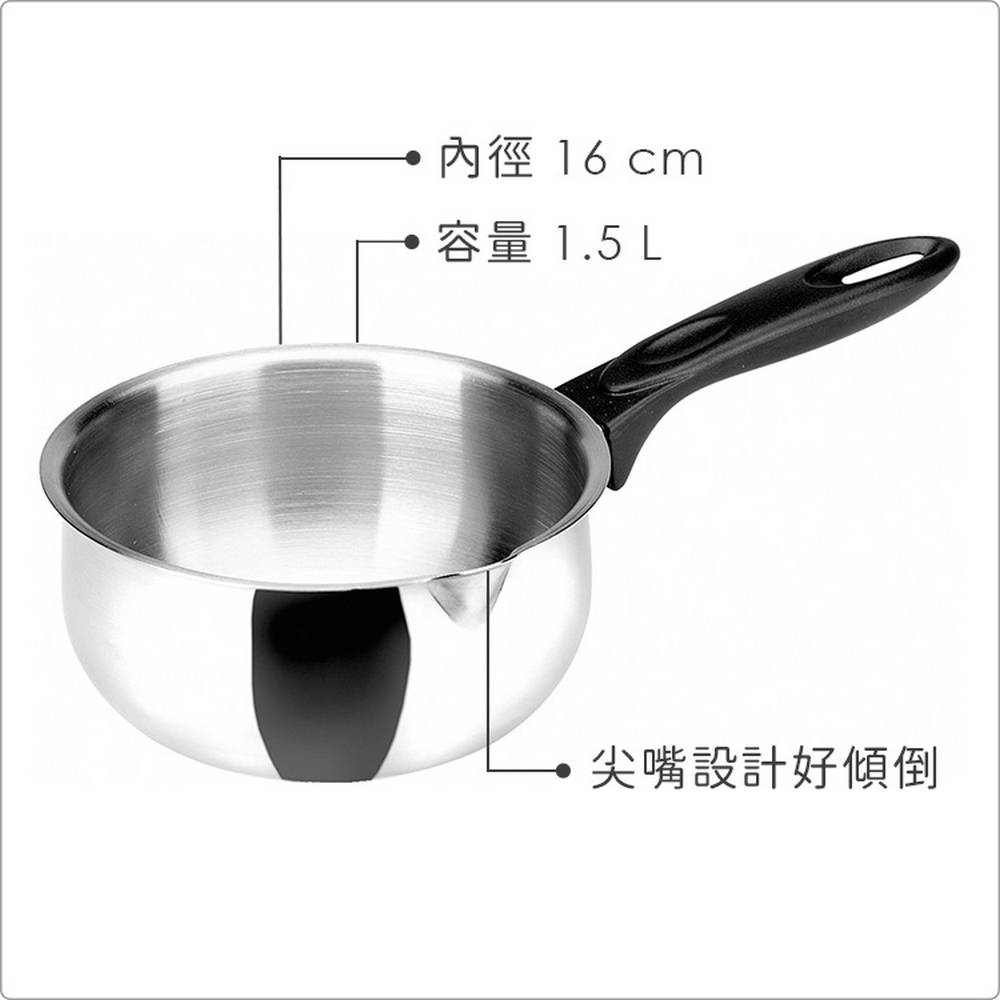 材質:430 不鏽鋼 (鍋身)、電木樹脂 (握柄)