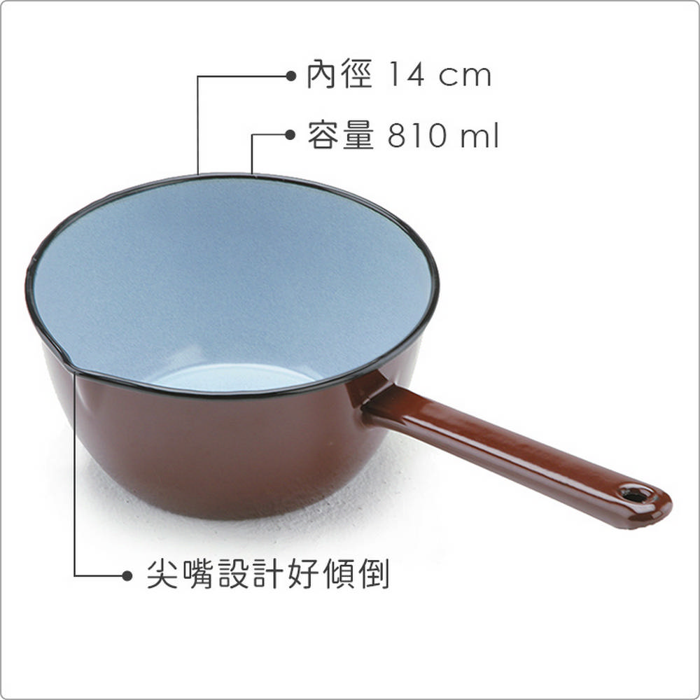 尺寸:含柄長 28.8 x 寬 15.5 x 高 8.3 cm、鍋口內徑 14 cm