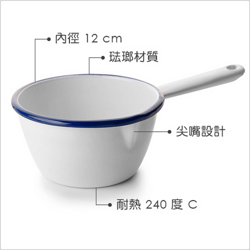 尺寸:含柄長 25.8 x 寬 13.6 x 高 7.3 cm、鍋口內徑 12 cm
