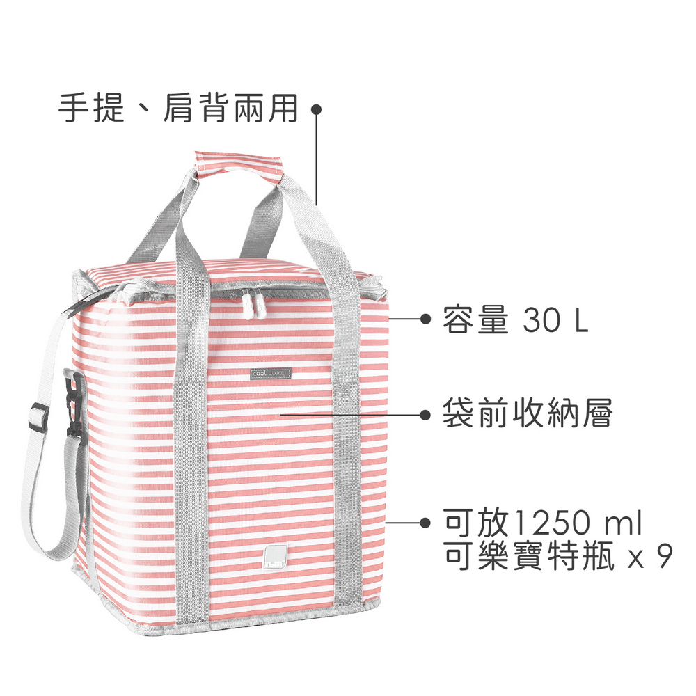 西班牙 ibili - Biarritz肩背保冷袋(粉櫻條紋30L) / 保溫袋 保冰袋 野餐包 野餐袋 便當袋