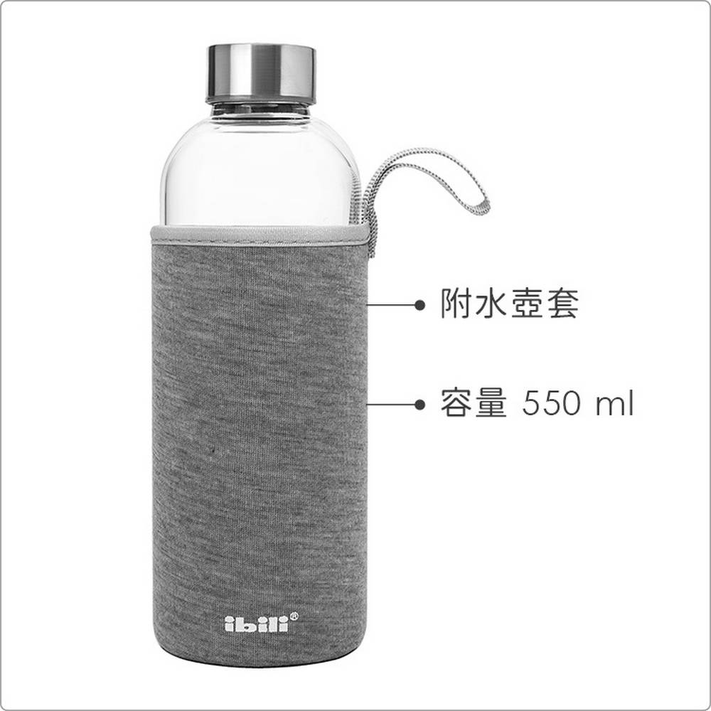 西班牙 ibili - 附套玻璃水壺(灰550ml) / 水壺 冷水瓶 隨行杯 環保杯