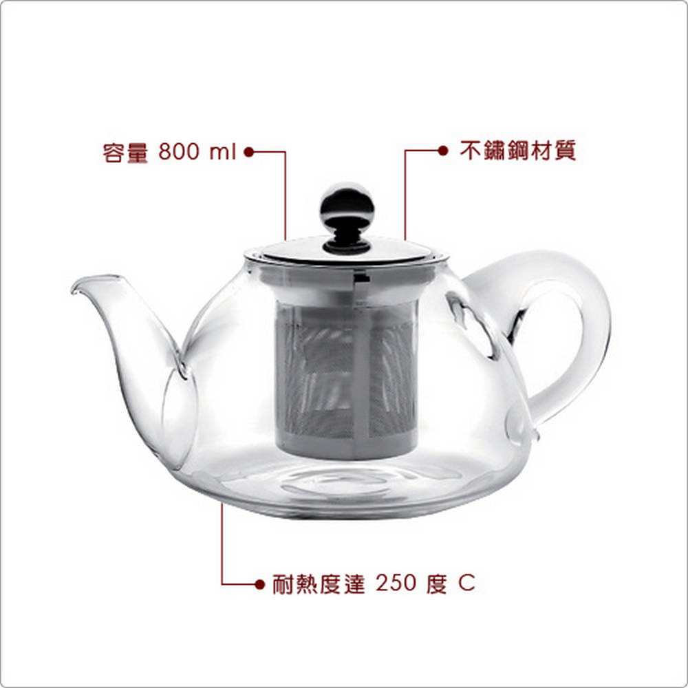 尺寸:含蓋長 22 x 寬 14.4 x 高 12.2 cm、壺口內徑 7.2 cm;濾茶器直徑 8.2 x 高 7.7 cm、底徑 5.6 cm