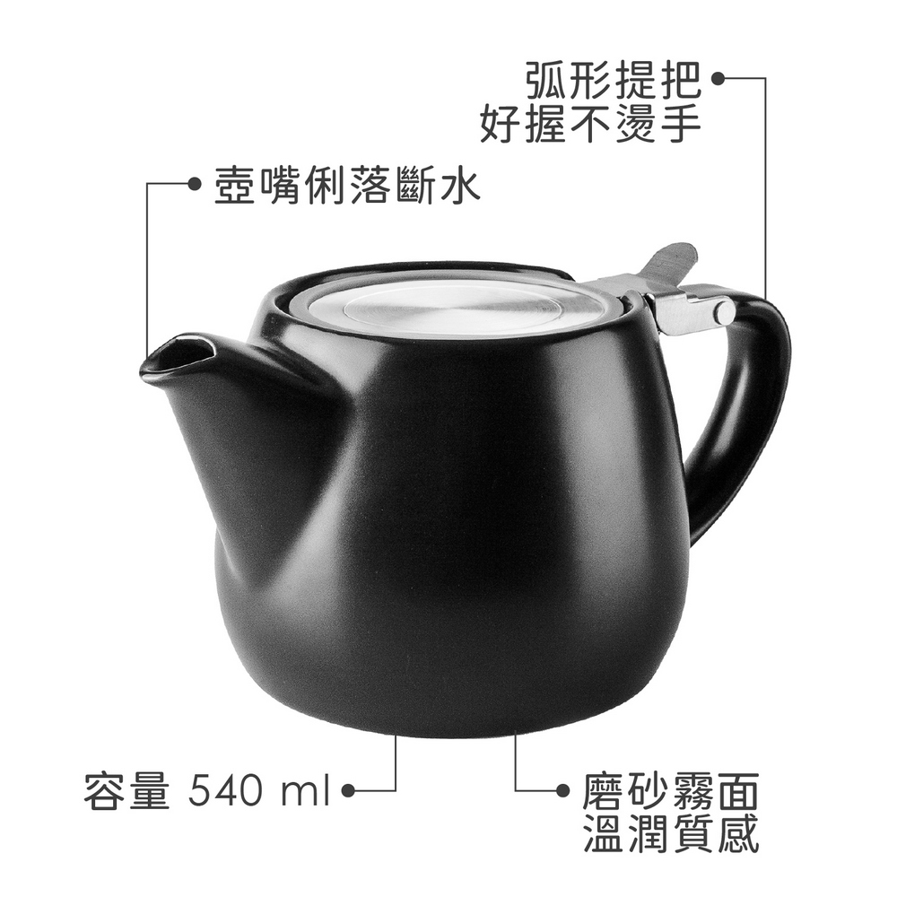 西班牙 ibili - Luxor瓷製濾茶壺(霧黑540ml) / 泡茶壺 沖泡壺 茶水分離壺 茶具