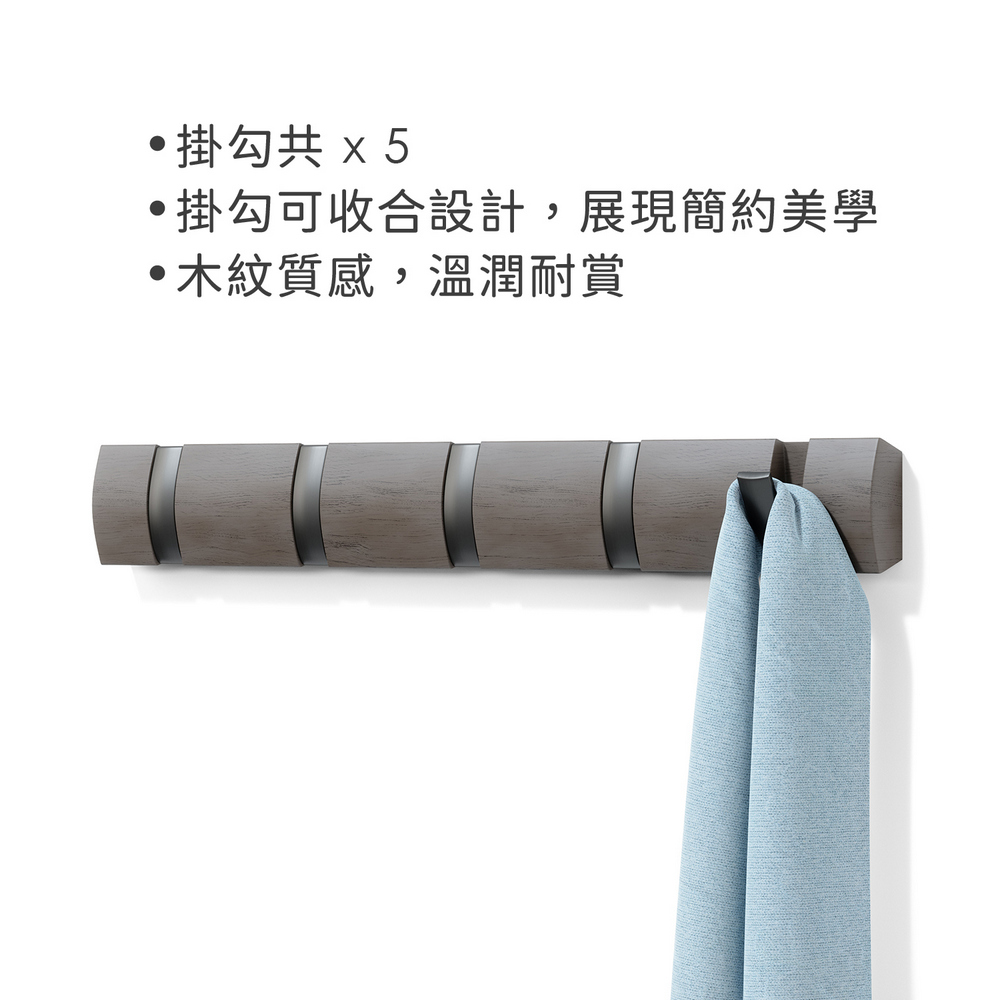 加拿大 Umbra - Flip 5格壁掛式掛勾收納架(苔棕) / 掛勾 牆壁掛勾 壁掛掛勾