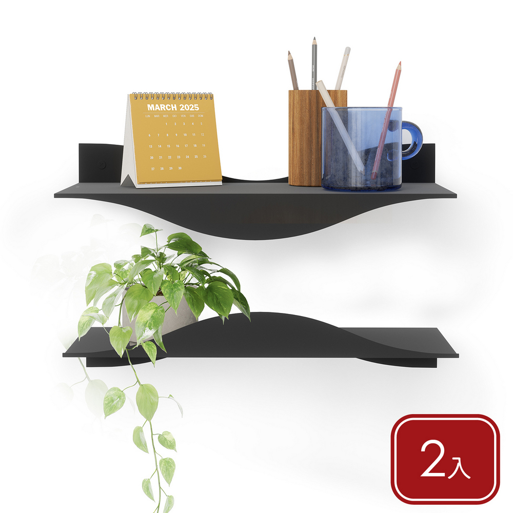 加拿大 Umbra - Surf壁掛式置物架2入(墨黑) / 掛勾 牆壁掛勾 壁掛掛勾