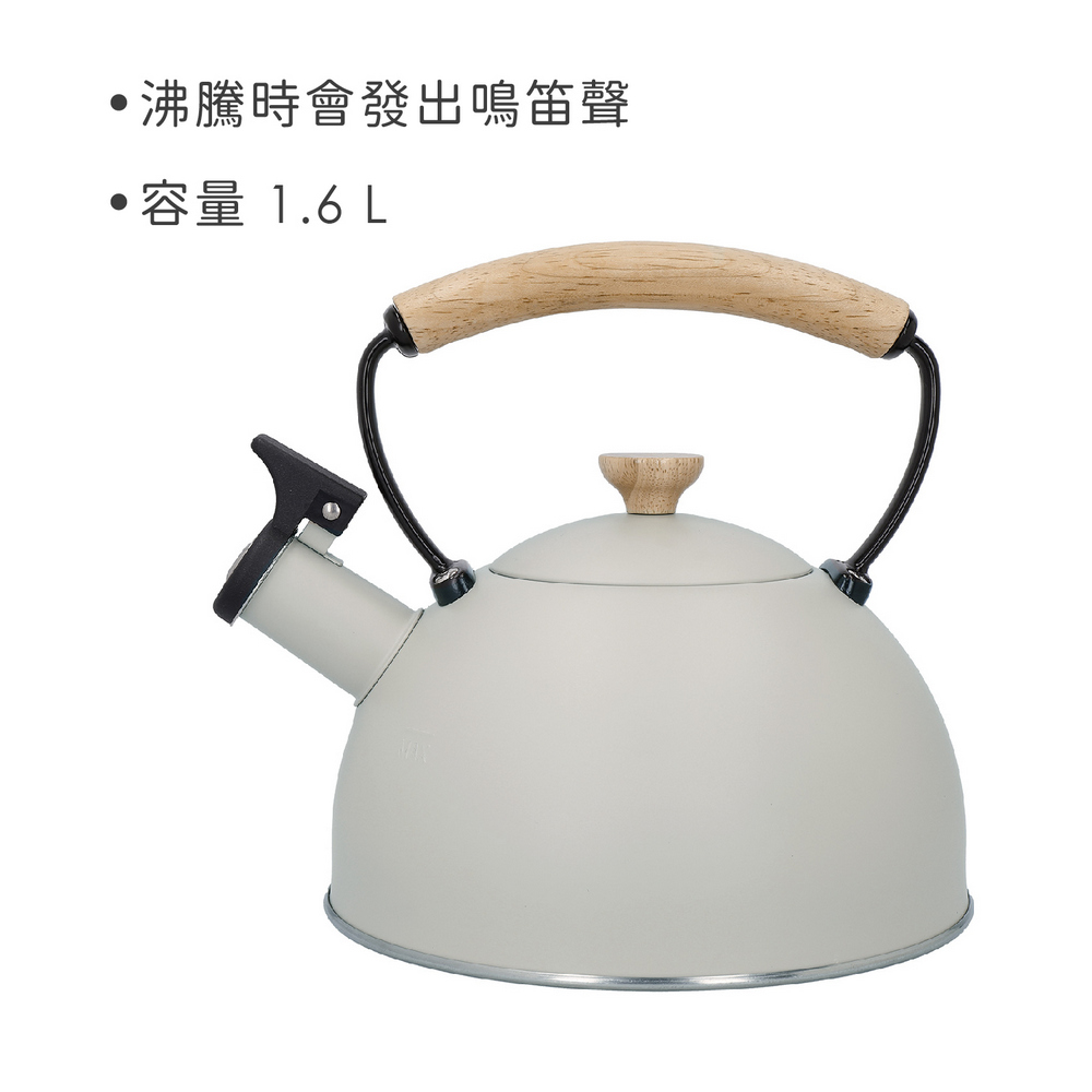 英國 La Cafetiere - 木柄不鏽鋼笛音壺(米灰1.6L) / 煮水壺 燒水壺