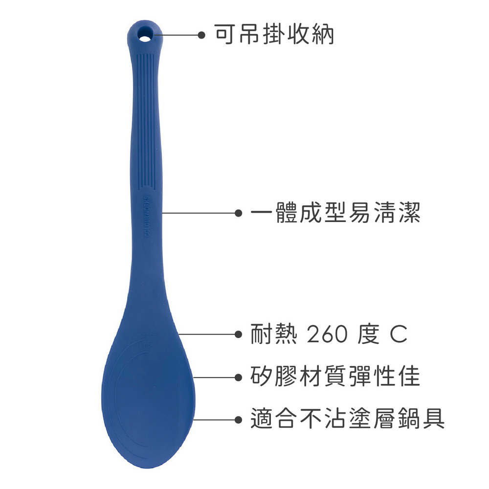 英國 Colourworks - 矽膠料理匙(藍29cm) / 攪拌匙 攪拌杓 料理杓
