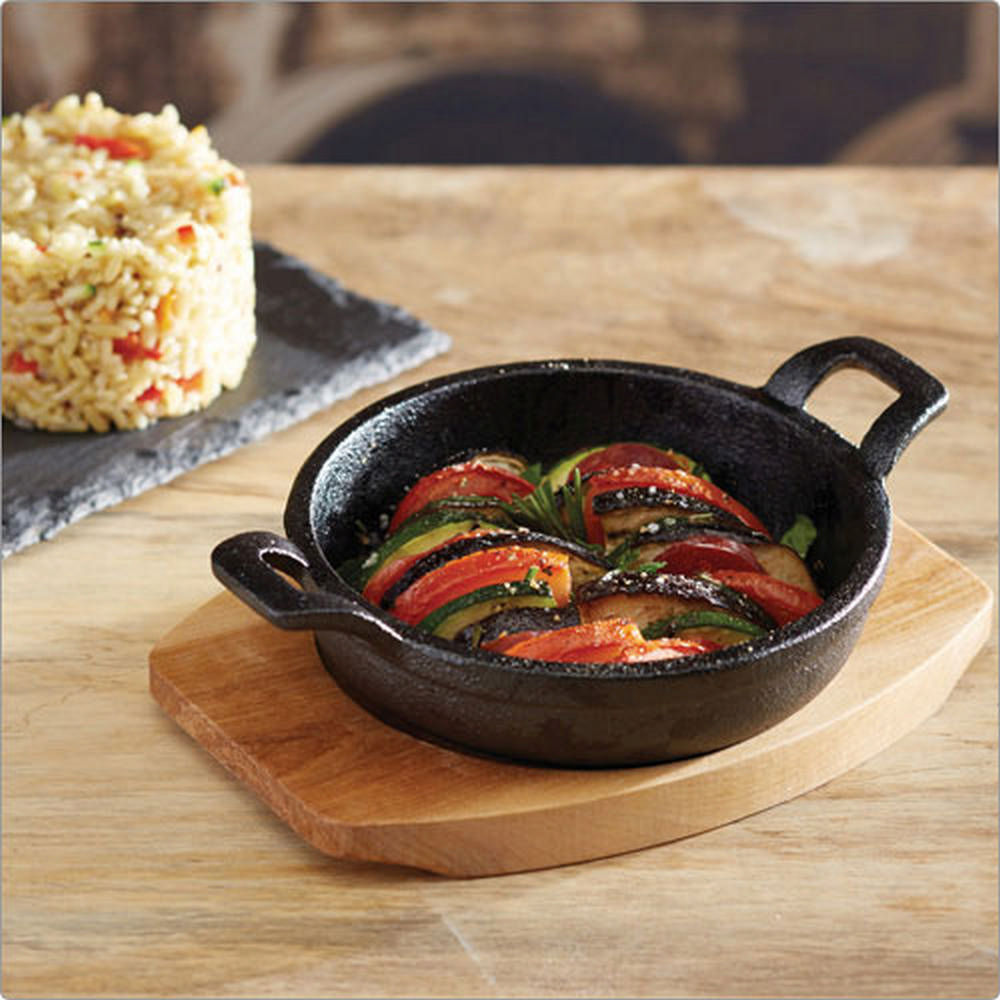 尺寸:煎烤盤含提耳長 16.5 x 寬 12 x 高 4.2 cm、盤口內徑 11.3 cm;木盤長 16.5 x 寬 12 x 高 1.5 cm