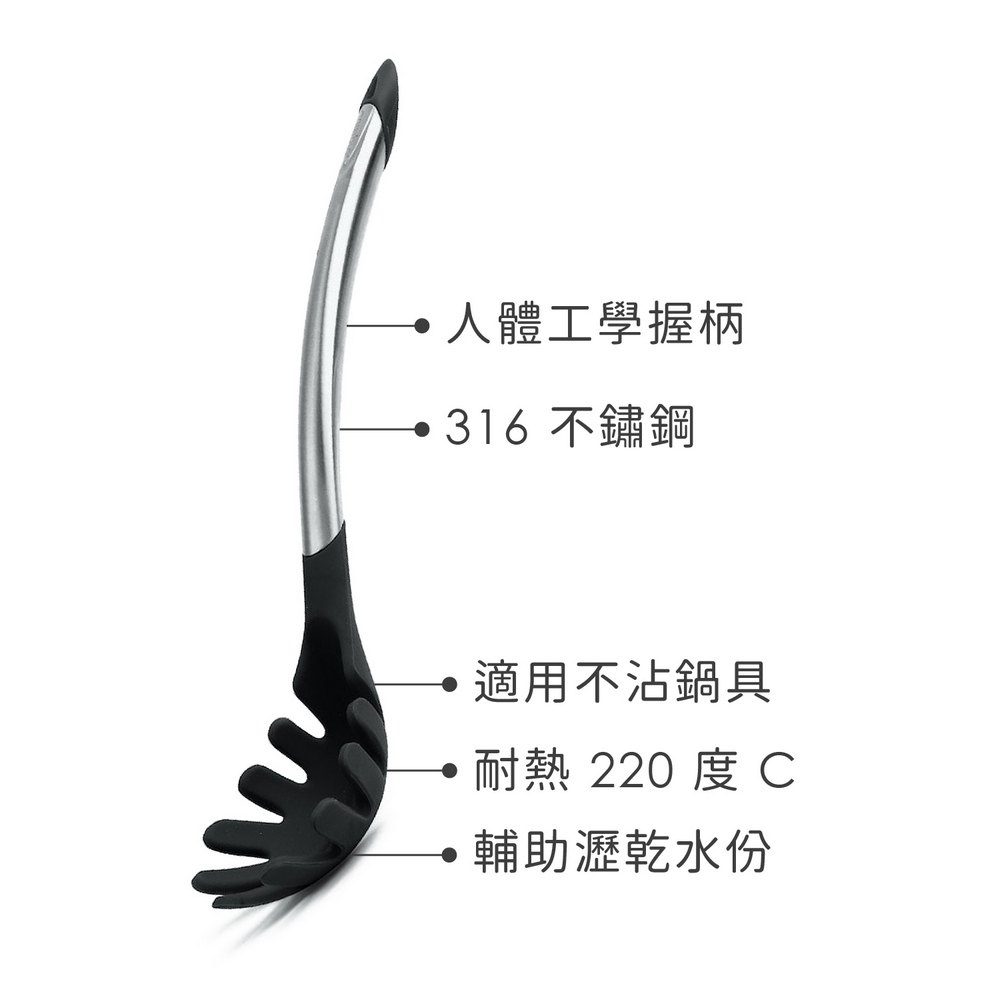 加拿大 Cuisipro - 不沾鍋矽膠麵杓(黑) / 撈麵杓