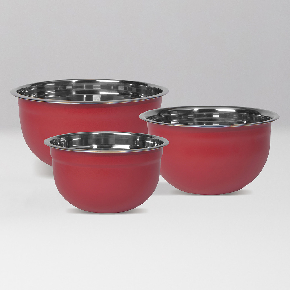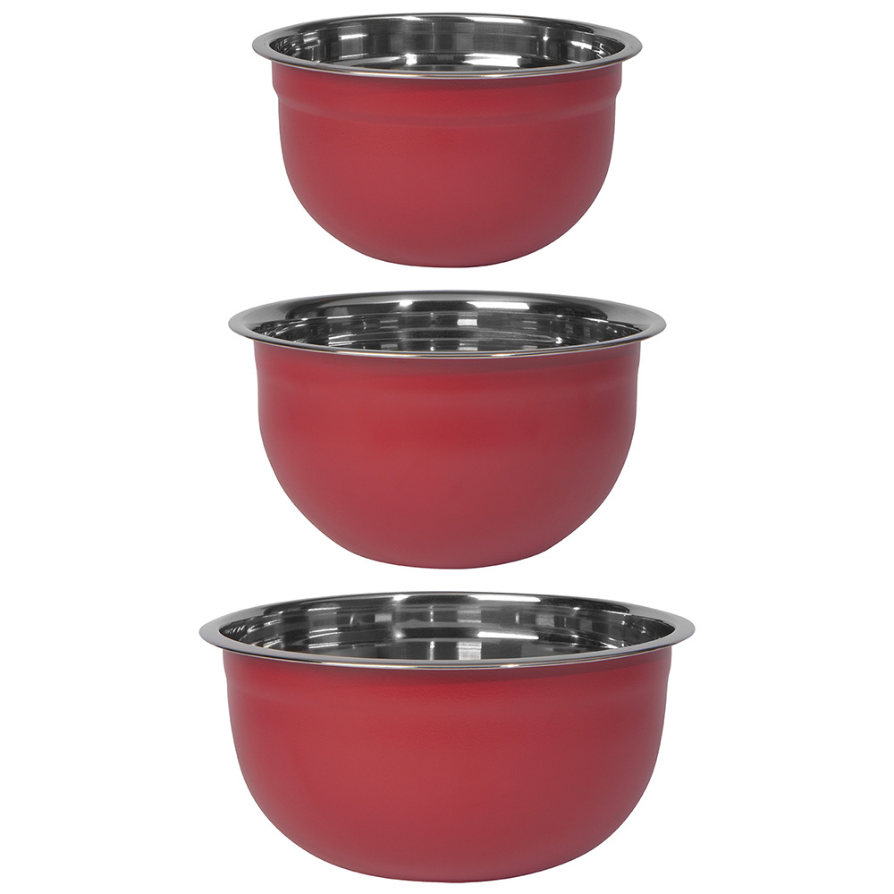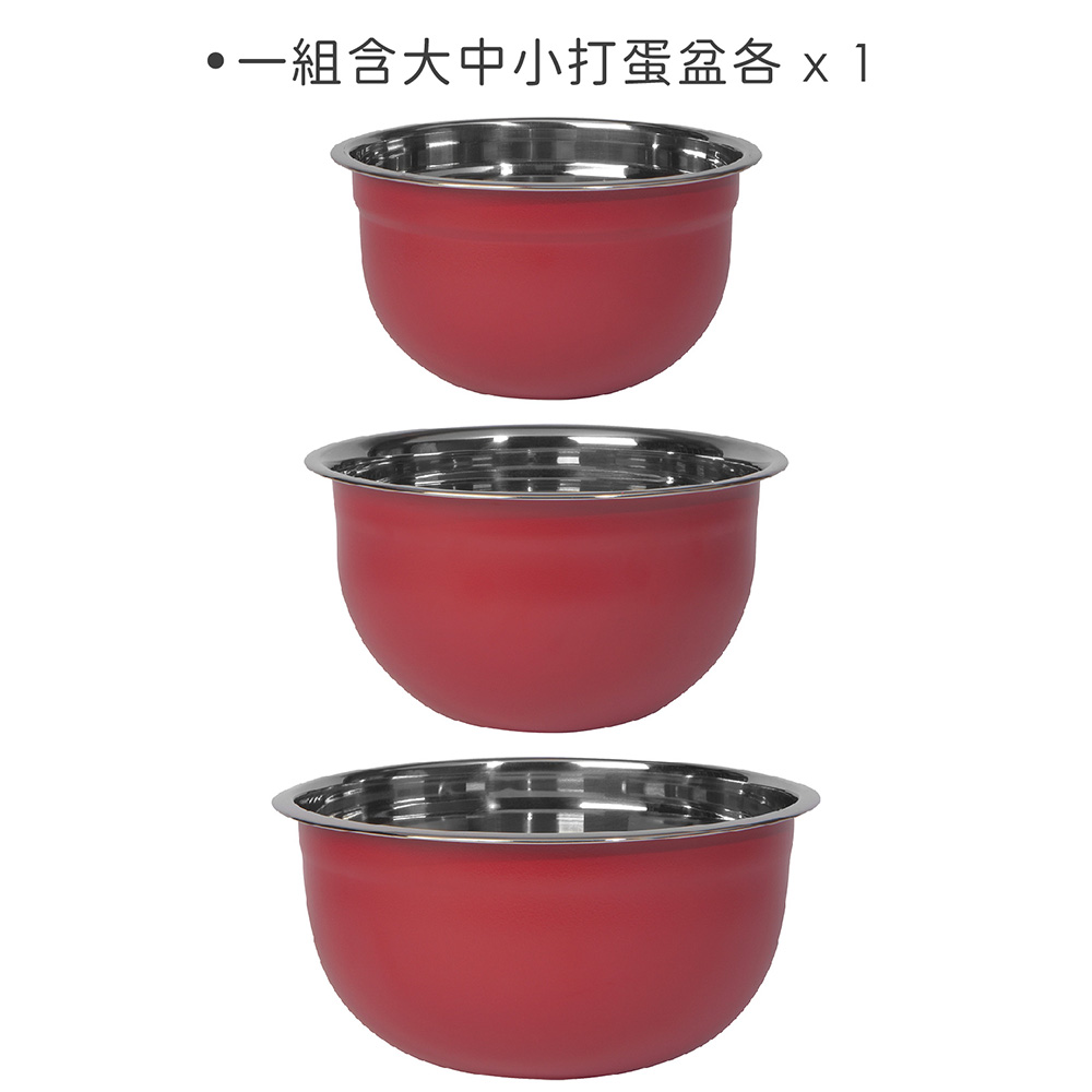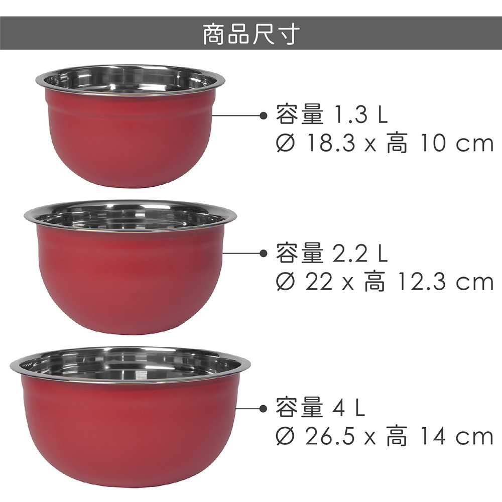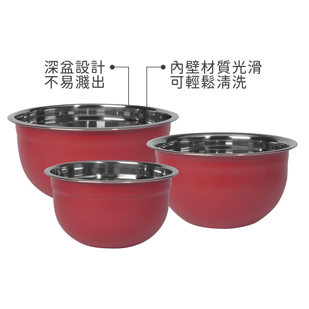美國 Now Designs By Danica - 深型打蛋盆3件(胭脂紅) / 不鏽鋼攪拌盆 料理盆 洗滌盆 備料盆