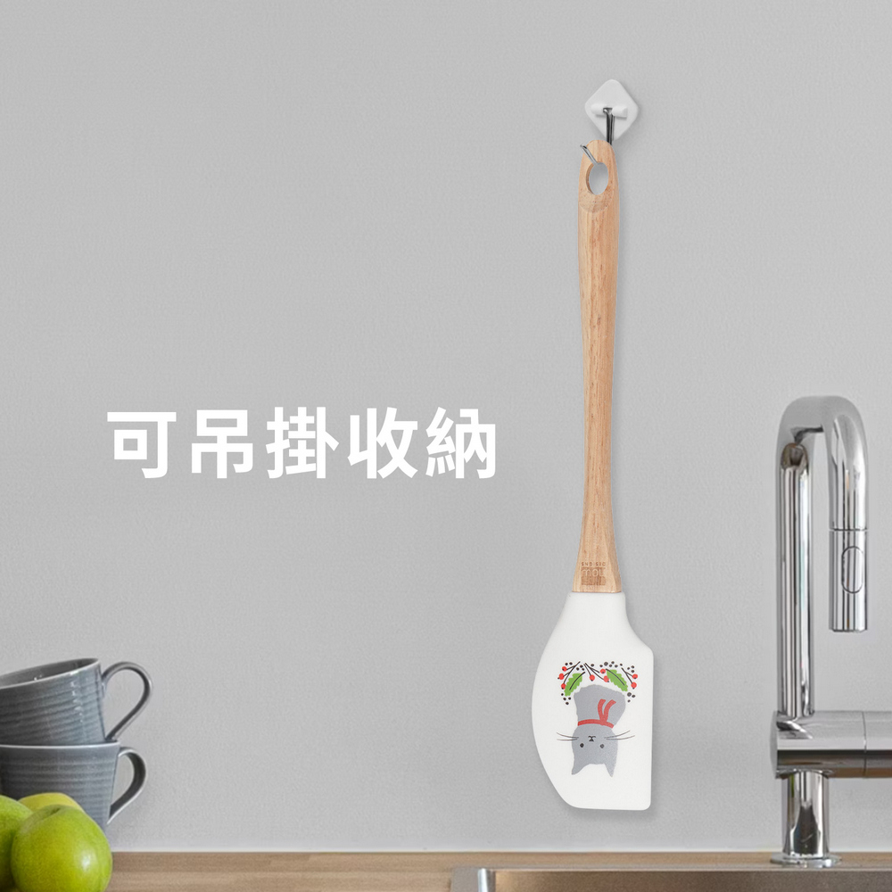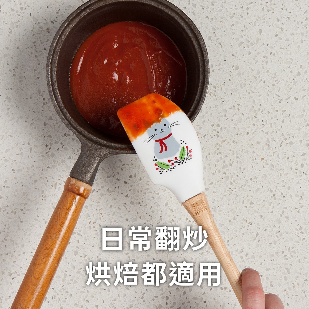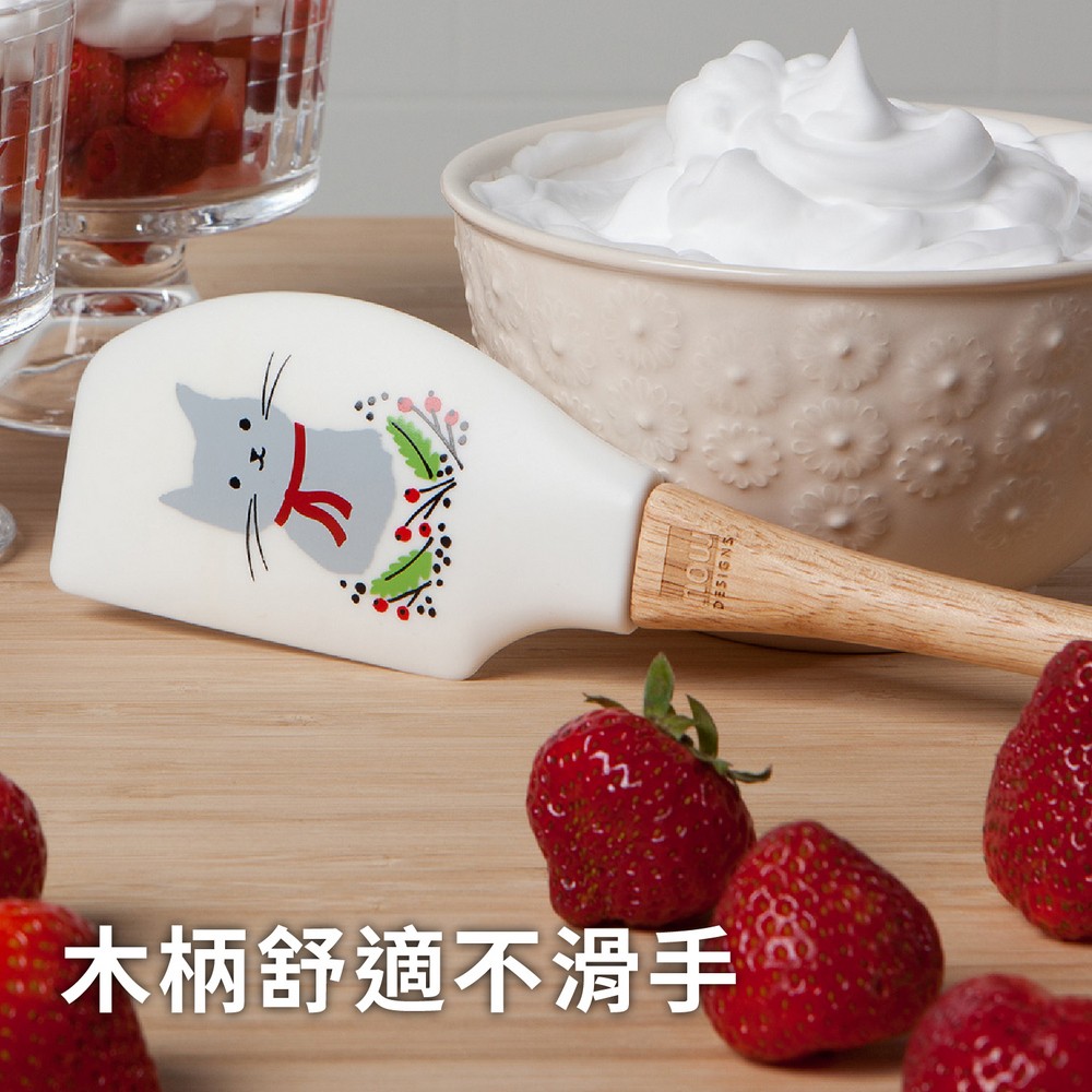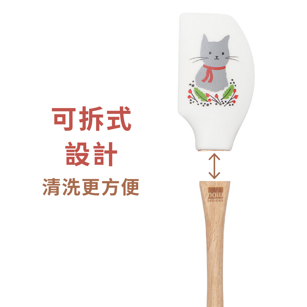 美國 Now Designs By Danica - 不沾鍋木柄矽膠刮刀(冬日貓語33cm) / 攪拌刮刀