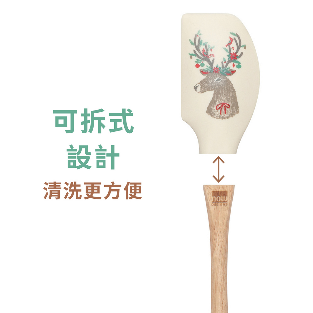 美國 Now Designs By Danica - 不沾鍋木柄矽膠刮刀(麋鹿之森33cm) / 攪拌刮刀