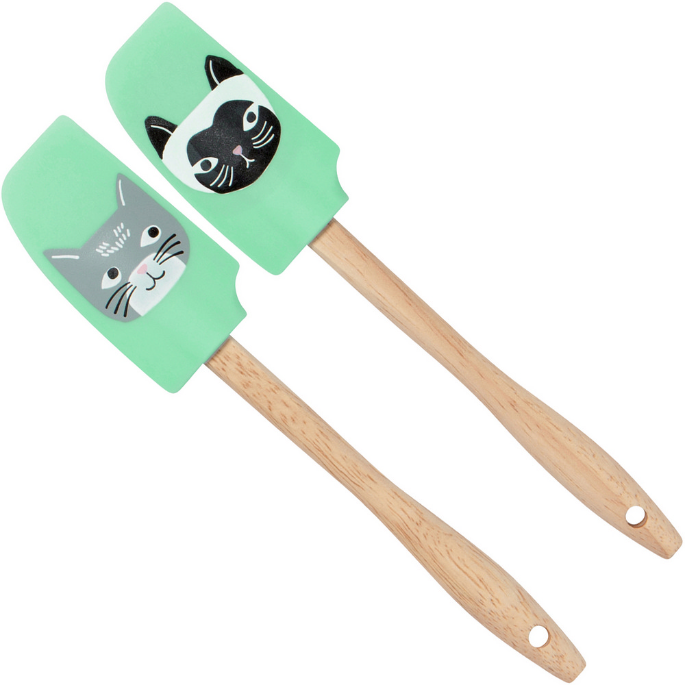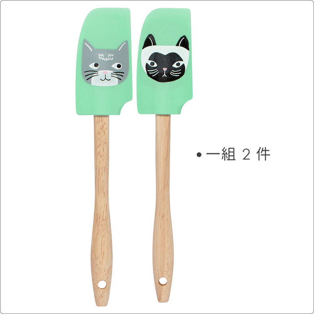 美國 Now Designs By Danica - 迷你木柄矽膠刮刀2件(貓咪青) / 攪拌刮刀 刮刀 奶油刮刀 抹刀